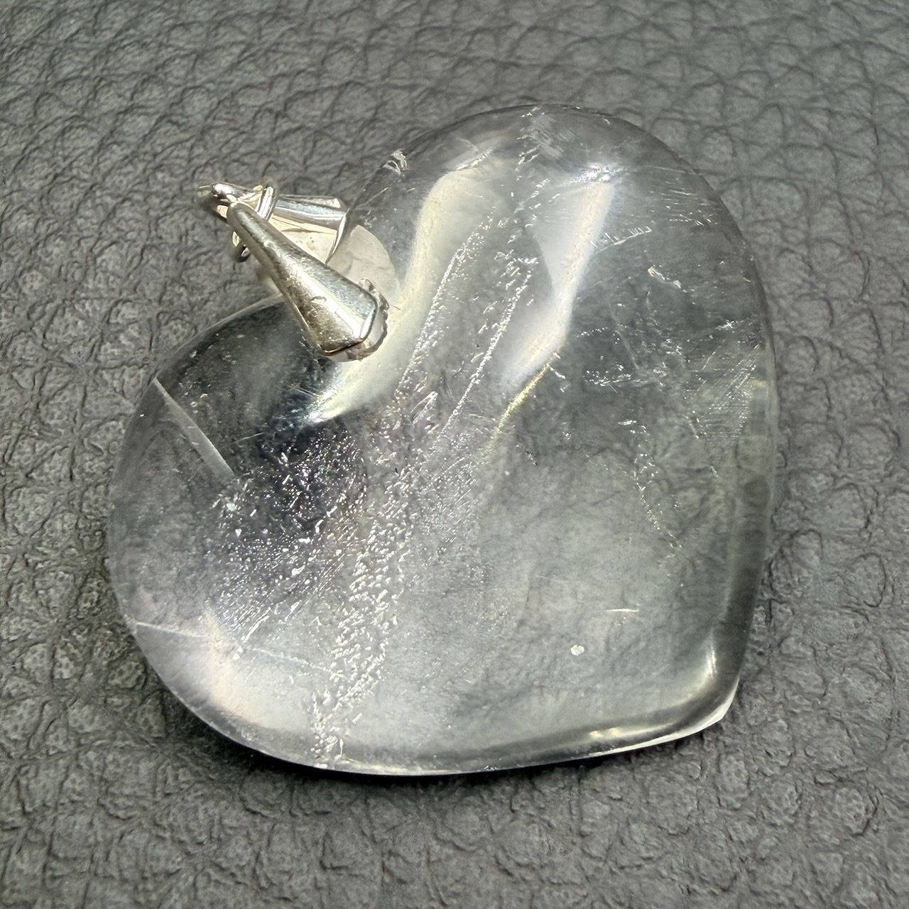 Dimensions du pendentif en cristal de roche hors bélière 2,8 cm sur 3,2 cm sur 0,7 cm.
