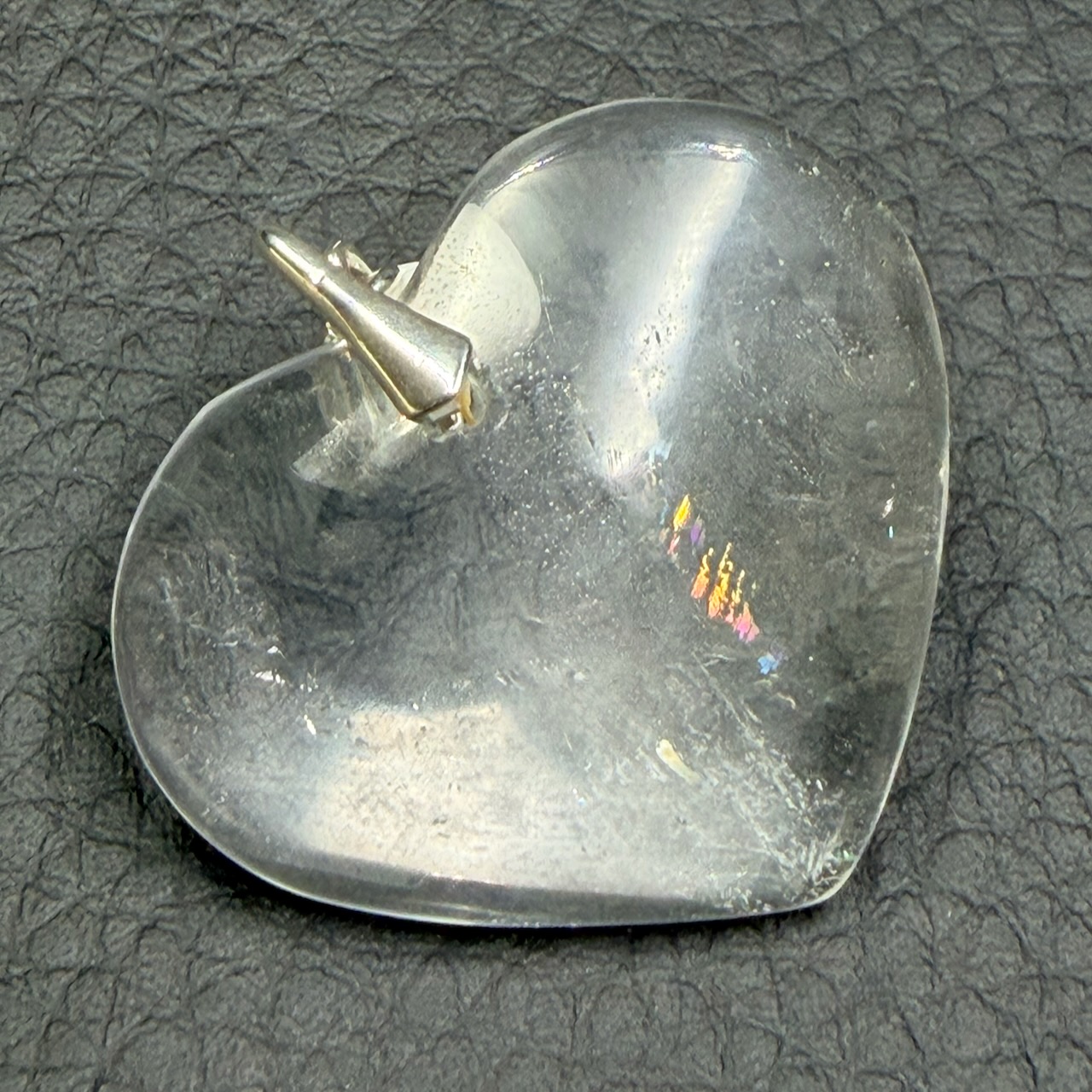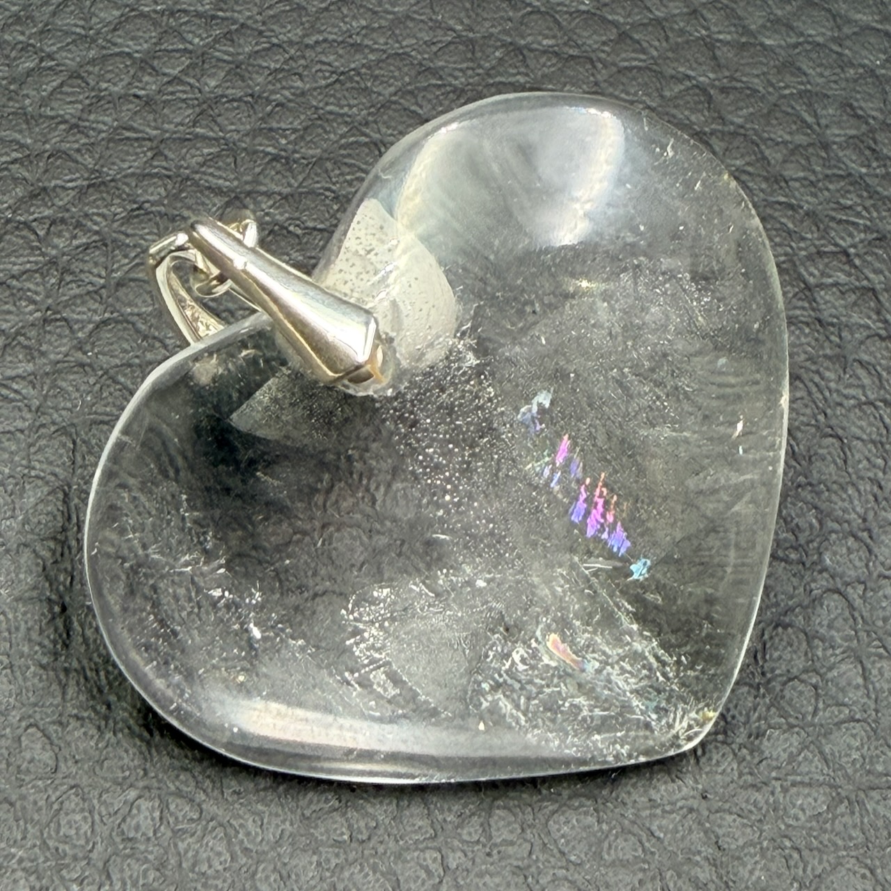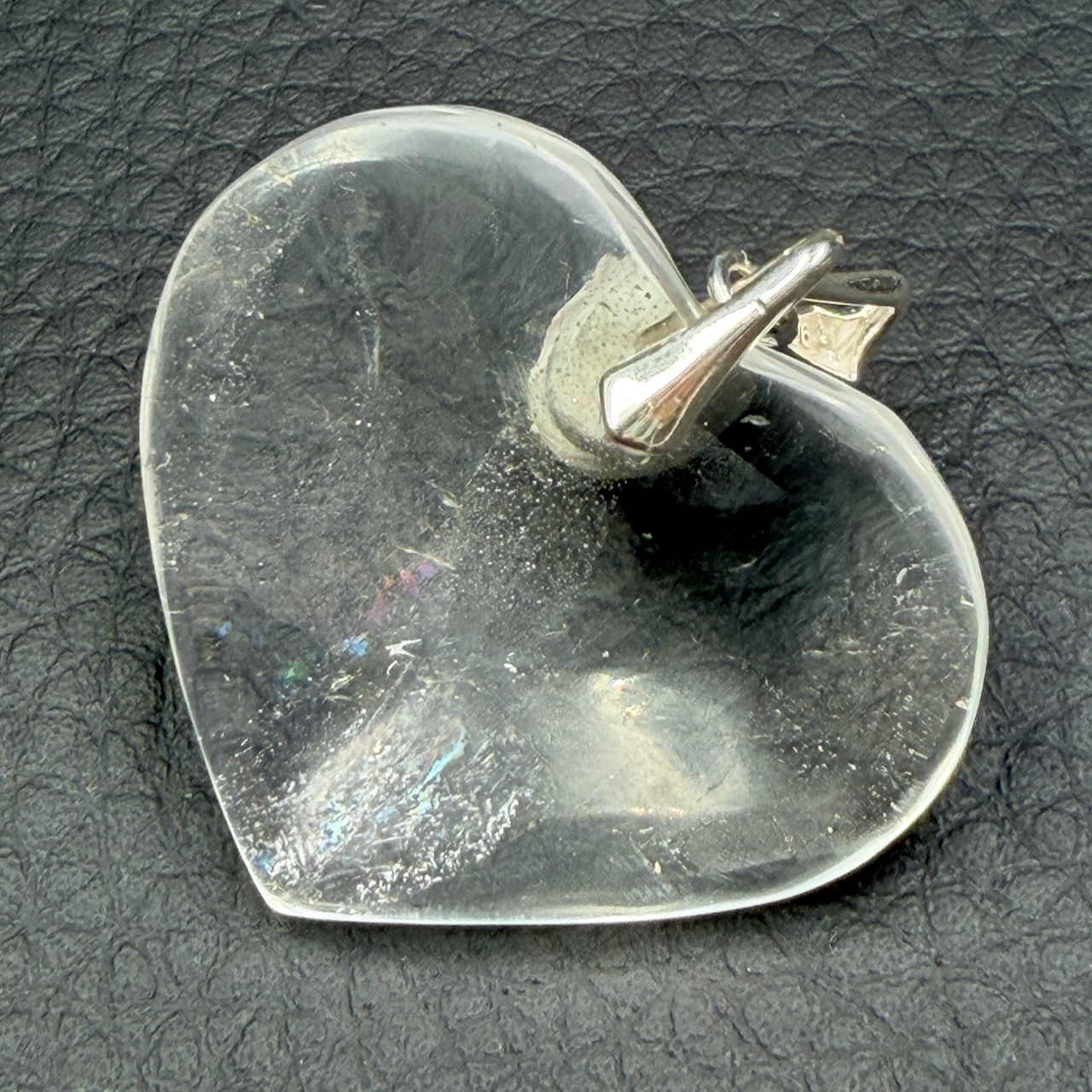 Dimensions du pendentif en cristal de roche hors bélière 2,8 cm sur 3,2 cm sur 0,6 cm.
