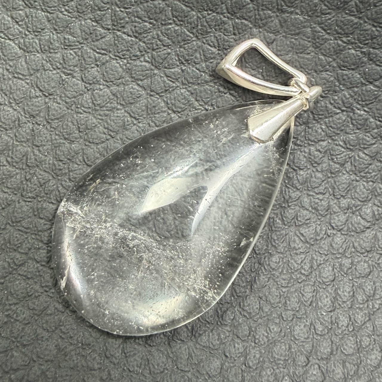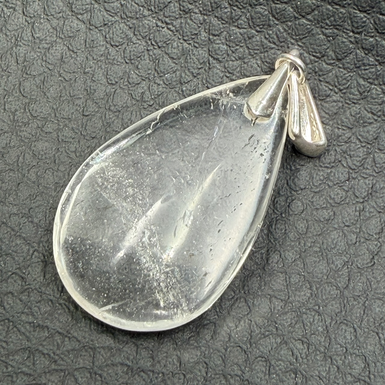 Dimensions du pendentif en cristal de roche hors bélière 3,4 cm sur 2,1 cm sur 0,6 cm.