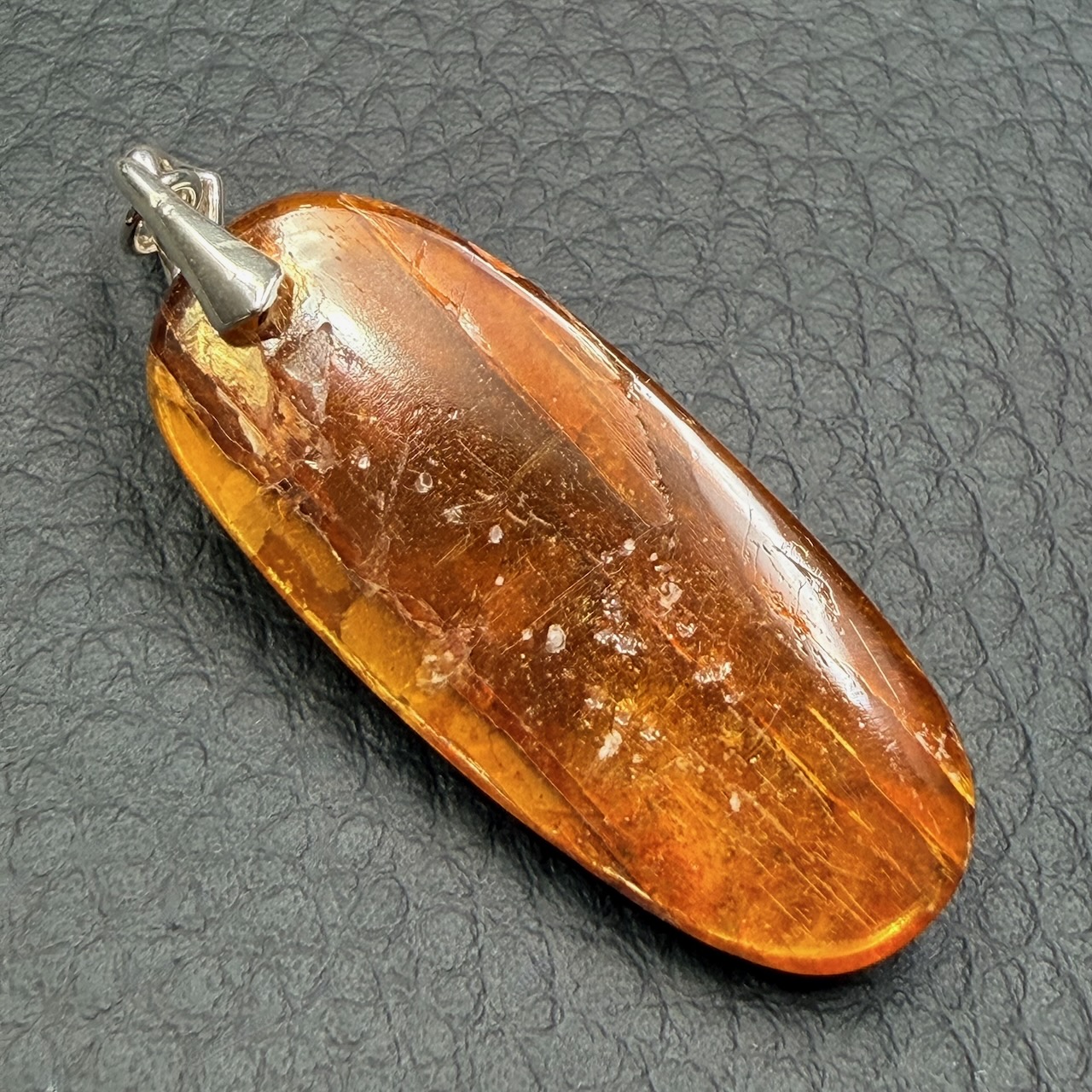 Taille du Pendentif en Cyanite Orange 3,6 cm sur 1,5 cm sur 0,5 cm.