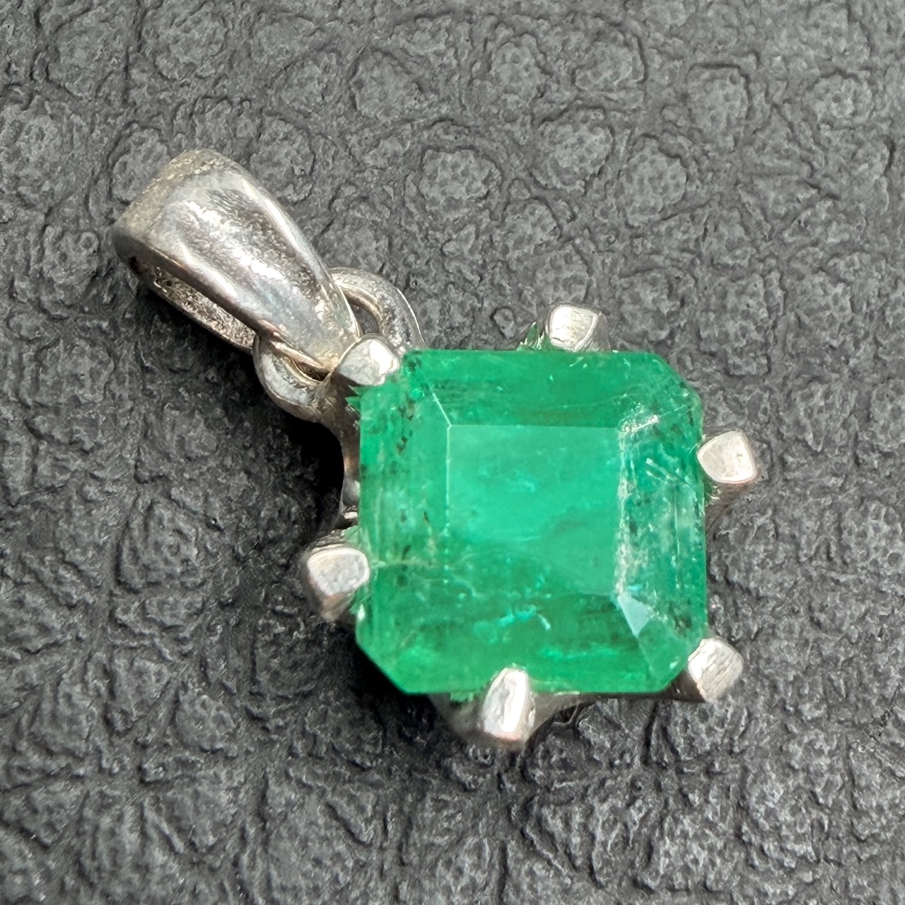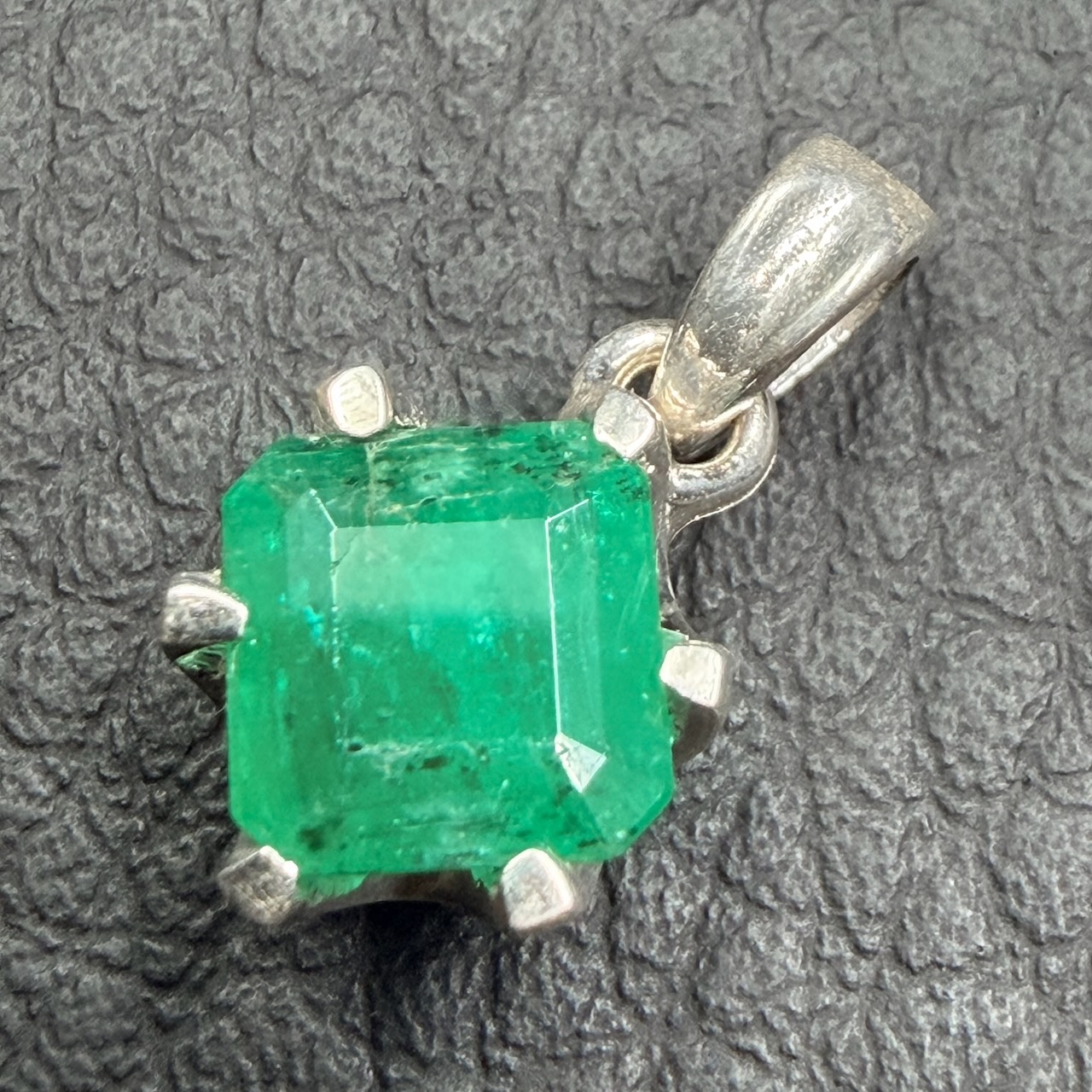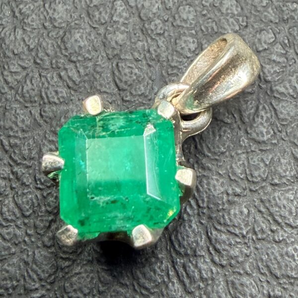 Taille du pendentif en émeraude hors bélière 0,9 cm sur 0,9 cm sur 0,6 cm.