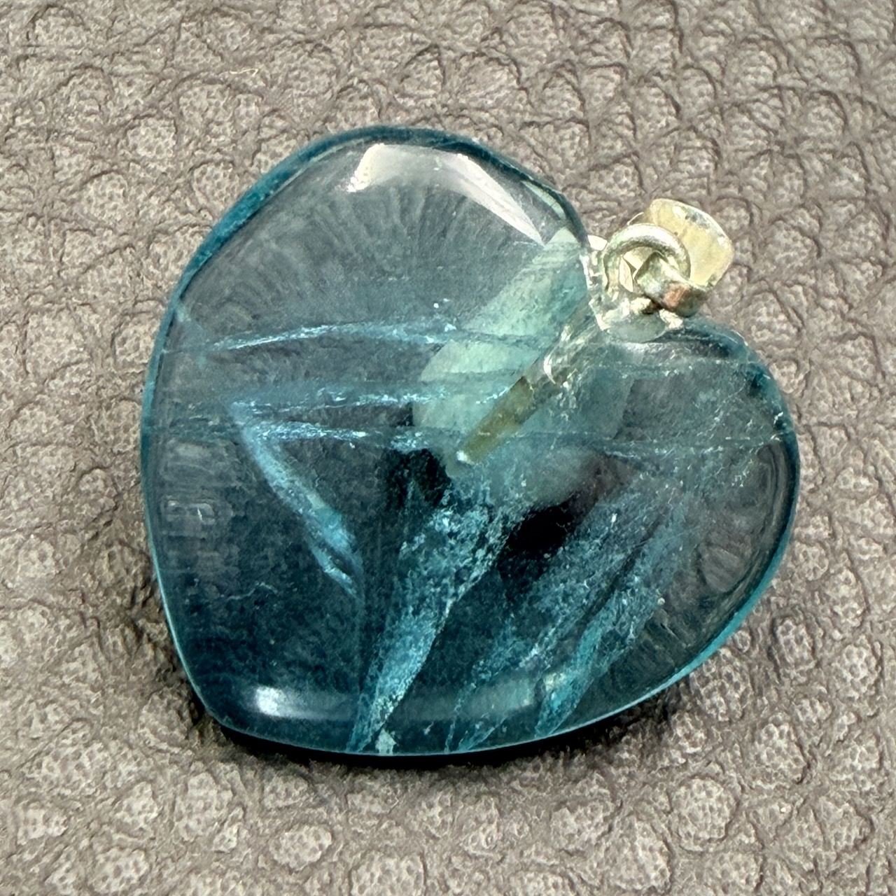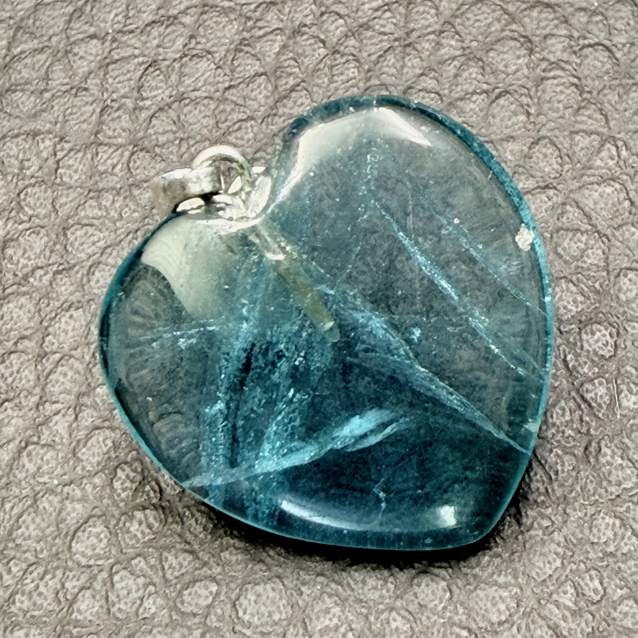 Taille du pendentif en fluorite hors bélière 2 cm sur 2 cm sur 0,5 cm.