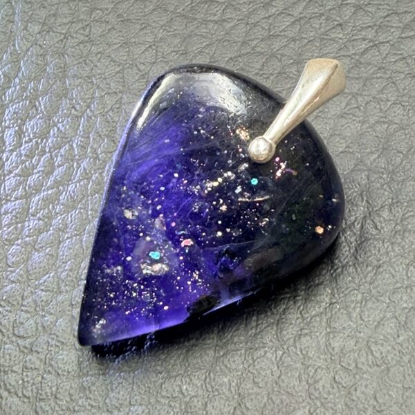 Taille du Pendentif en Iolite hors bélière 2,8 cm sur 2,1 cm sur 0,7 cm.