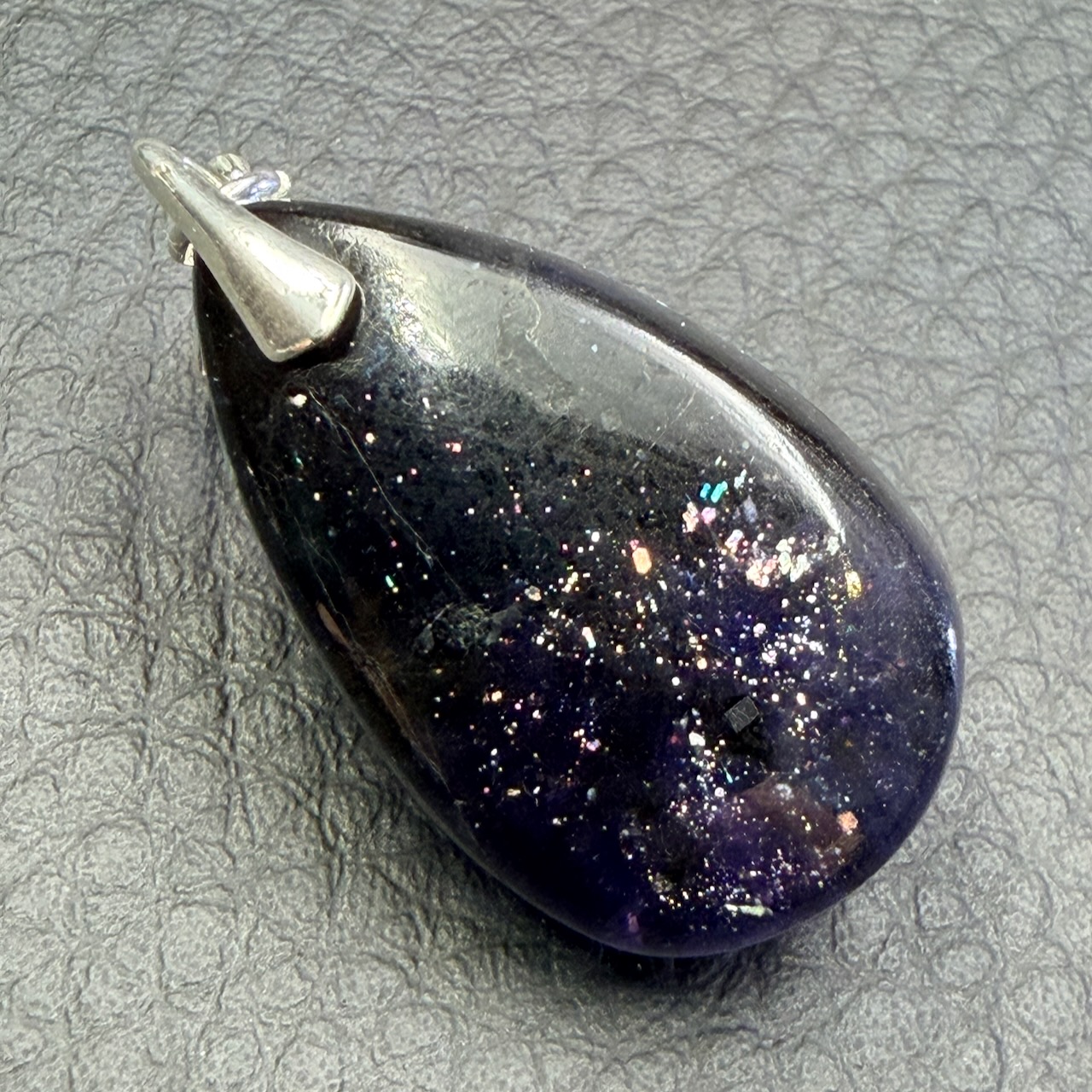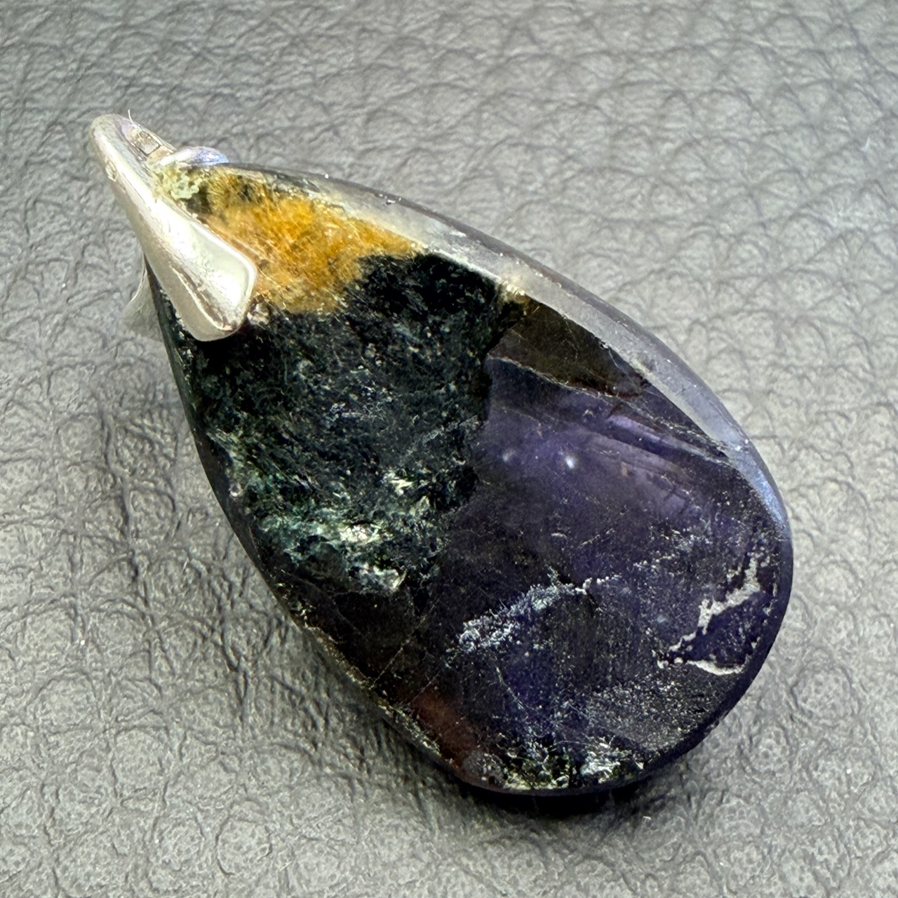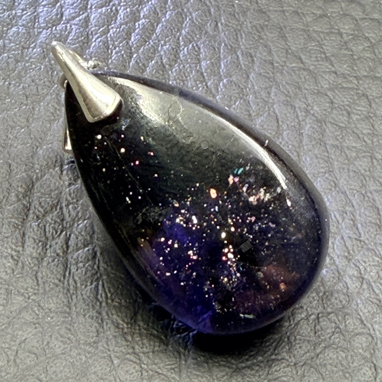 Taille du Pendentif en Iolite hors bélière 2,7 cm sur 1,7 cm sur 0,7 cm.