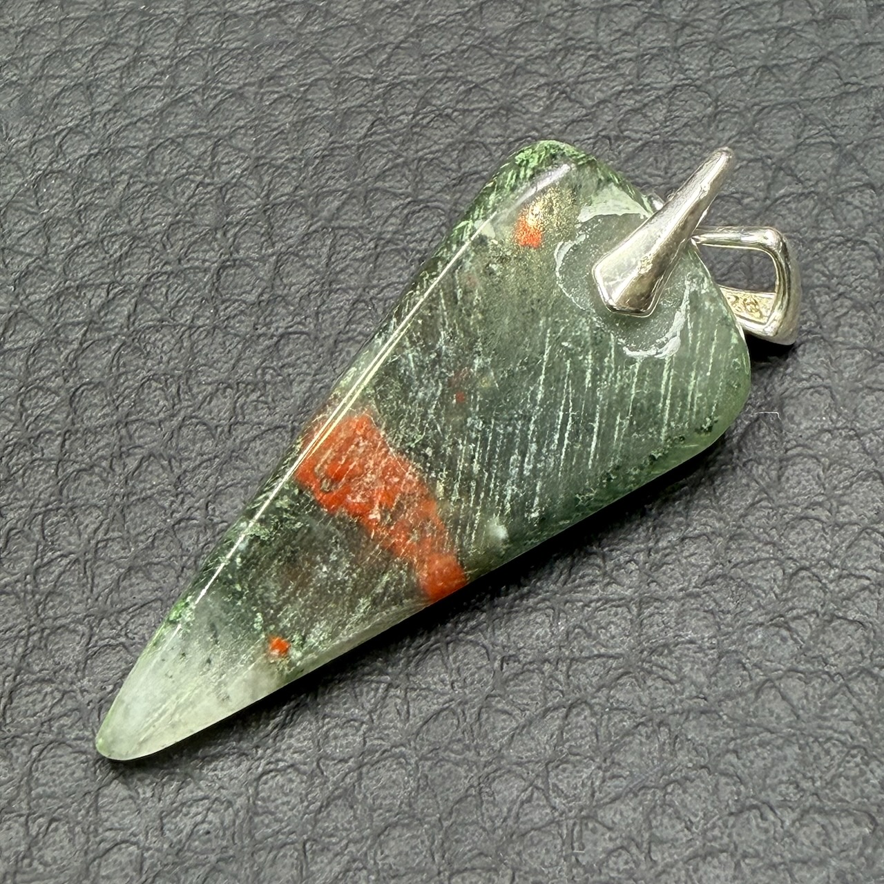 Taille du Pendentif en Jaspe Sanguin Héliotrope 3,5 cm sur 1,6 cm sur 0,8 cm.