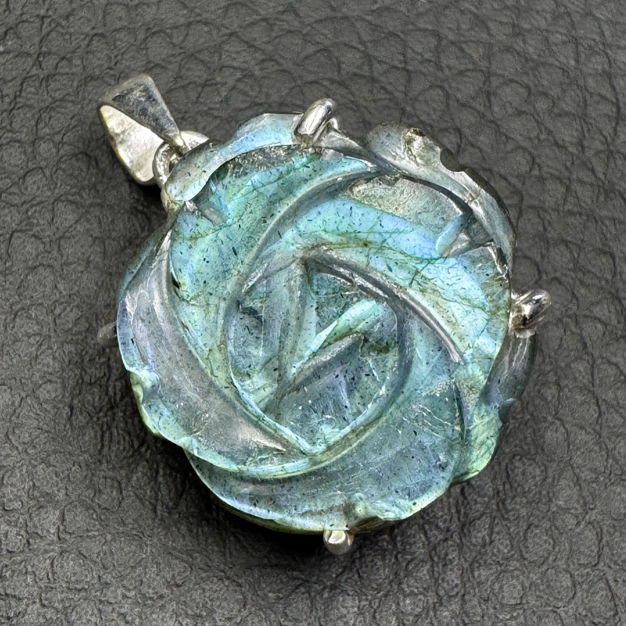 Ce pendentif en labradorite sculpté en rose n’est pas un objet figé. Il est un souffle, un murmure minéral, une vibration à fleur de peau. Il dit ce que les mots ne savent pas toujours dire. Il console, il éclaire, il protège.