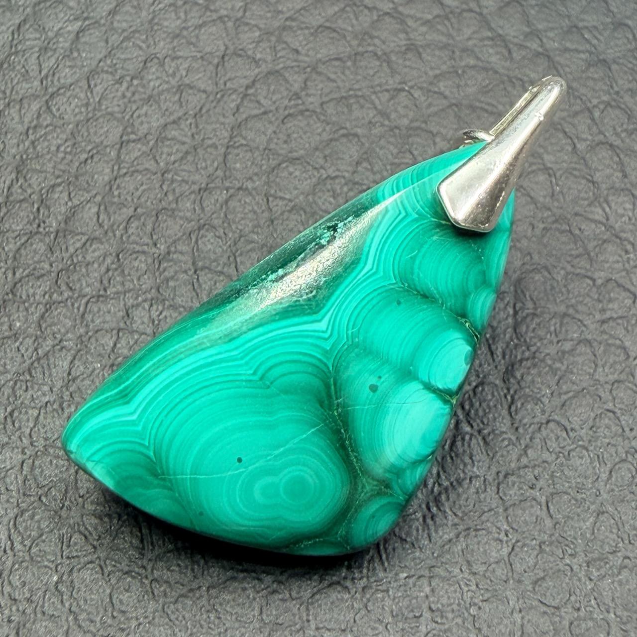 Un pendentif en malachite, avec sa magnifique couleur verte, nécessite une purification et un rechargement réguliers pour maintenir ses propriétés énergétiques.