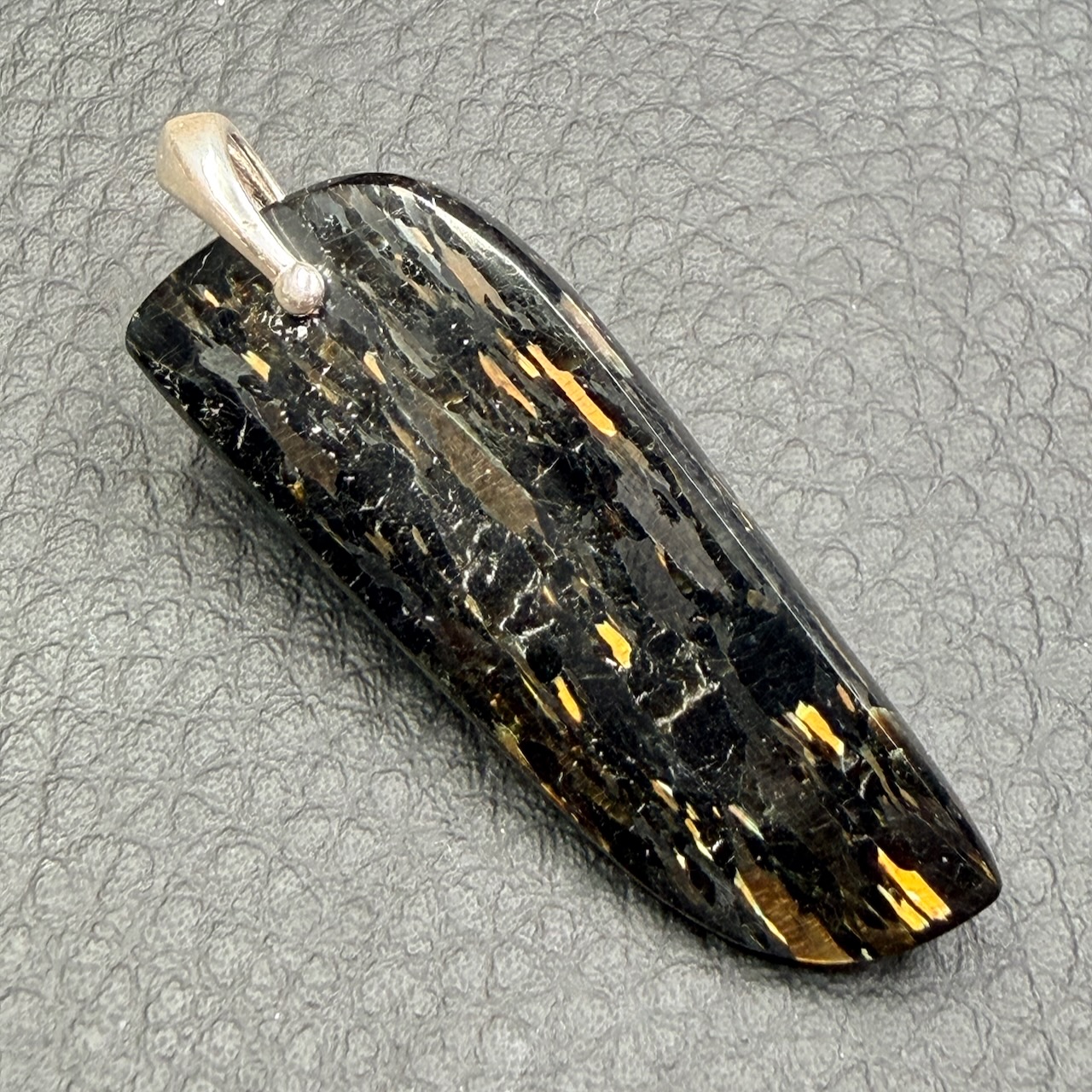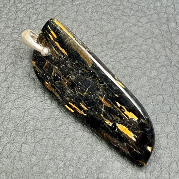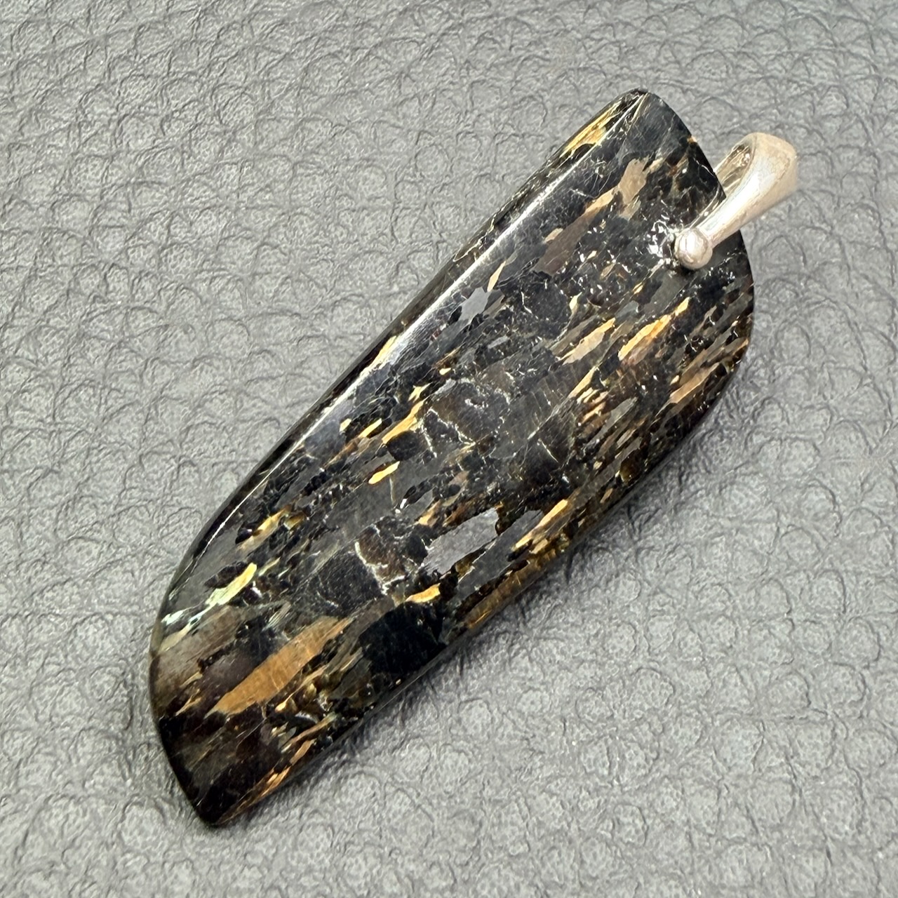 Des jolies touches iridescentes sur un fond noir d’encre, sont provoquées par le métamorphisme, c’est le résultat de l’interférence de la lumière réfléchie par l’alternance cohérente des lamelles de gédrite parallèles à l’anthophyllite.