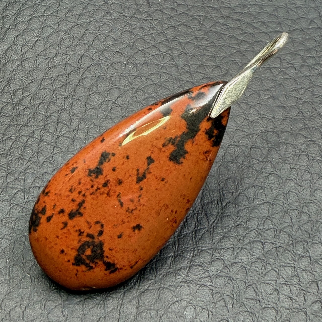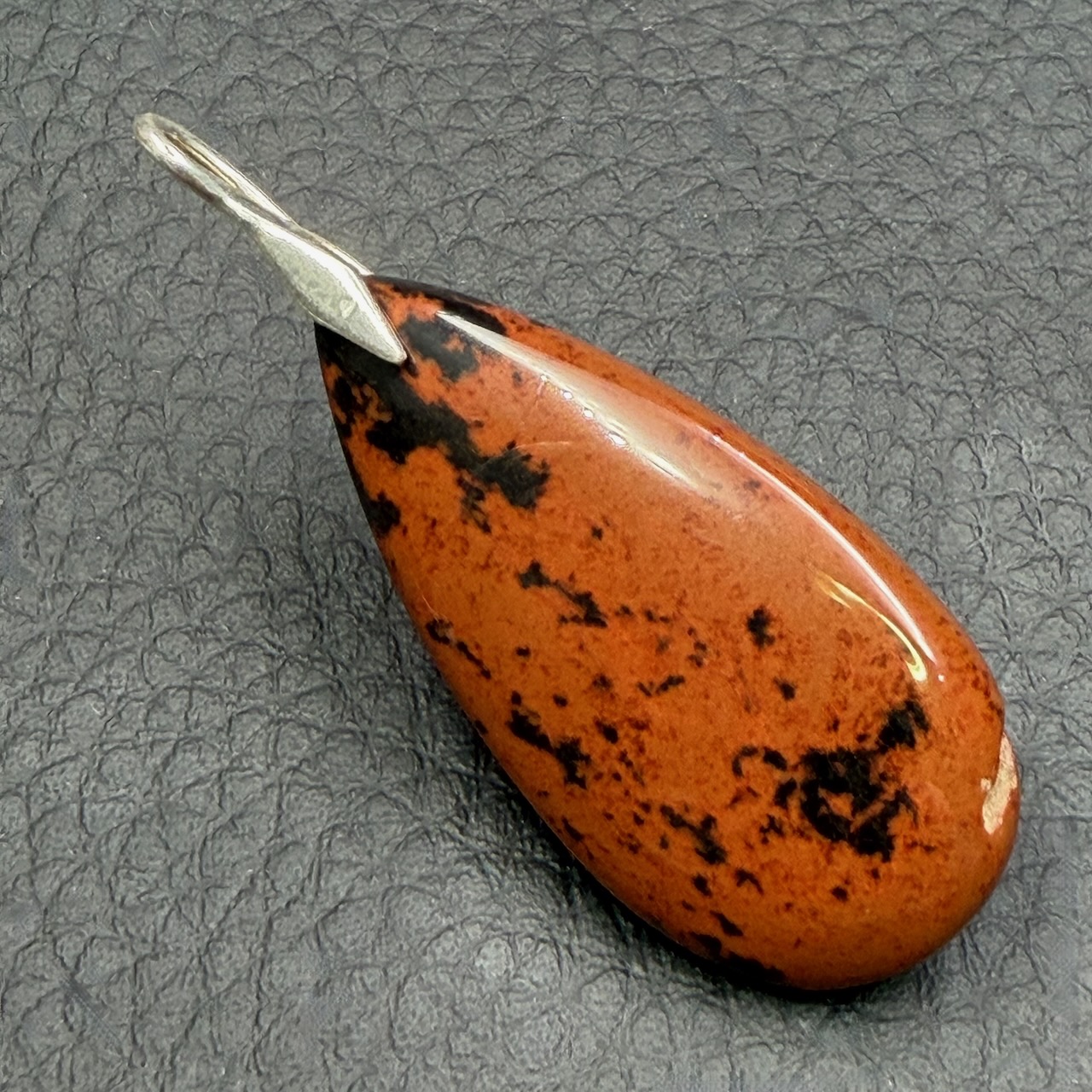 Taille du Pendentif en Obsidienne Acajou « Mahogany » hors bélière 3,9 cm sur 1,9 cm sur 0,5 cm.