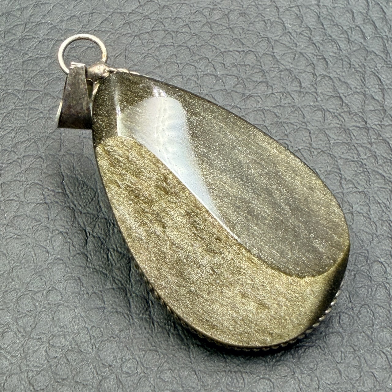 Taille du pendentif en obsidienne dorée 3,8 cm sur 2,2 cm sur 0,7 cm.