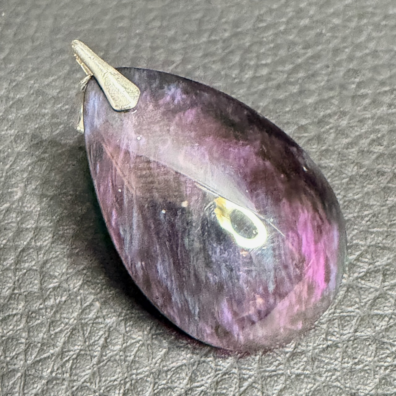 Ces micro-couches agissent comme des prismes naturels. Lorsque la lumière pénètre la pierre, elle est réfléchie de façon fragmentée, produisant ces reflets mêlés qui semblent flotter sous la surface. Ce jeu de lumière n’est pas simplement décoratif : il témoigne de la violence et de la complexité des événements géologiques qui ont donné naissance à la pierre.