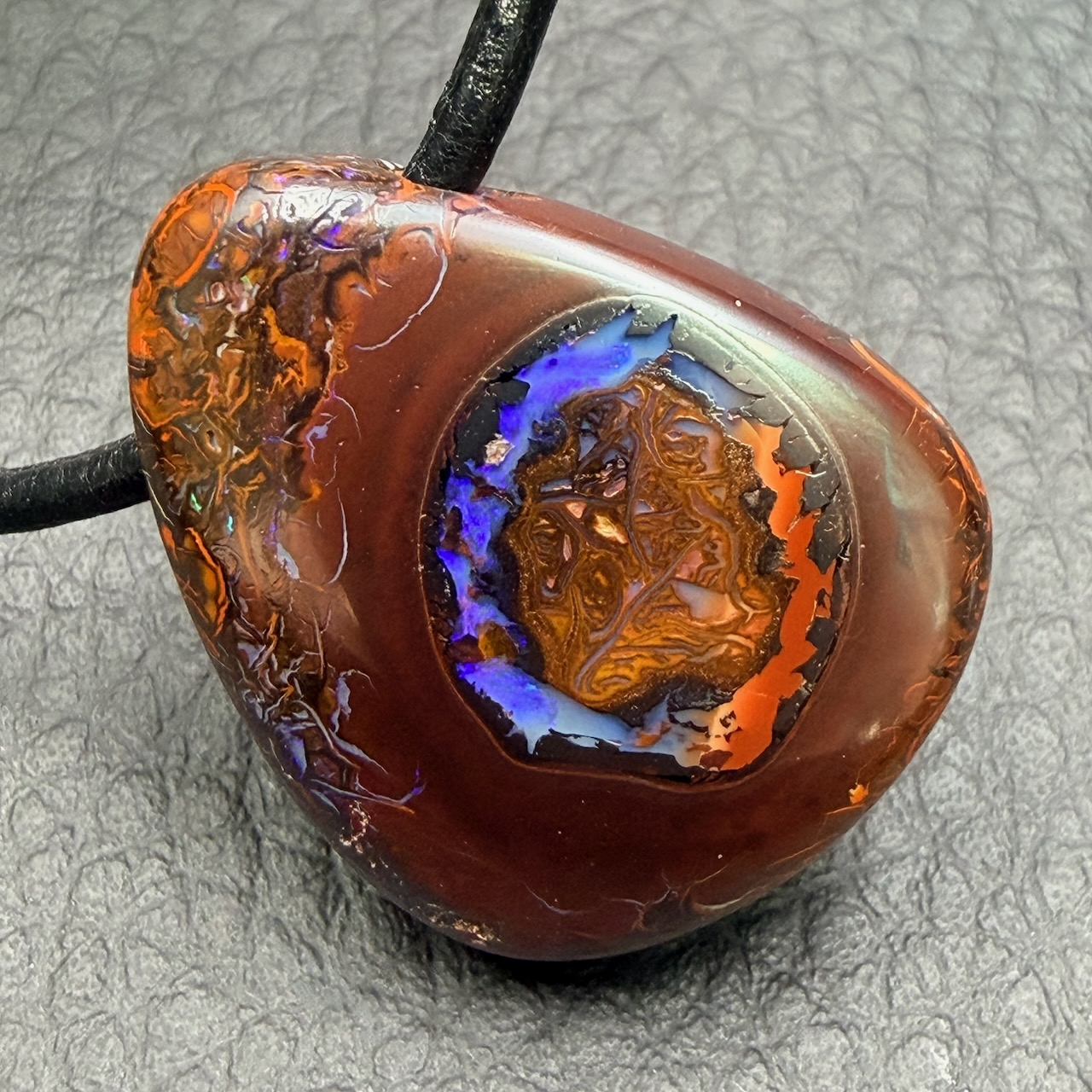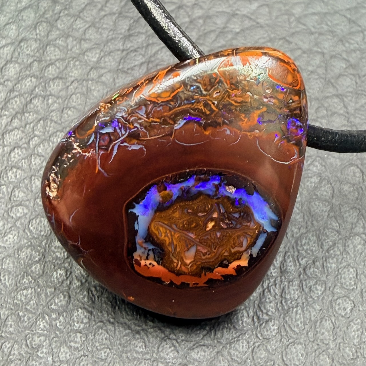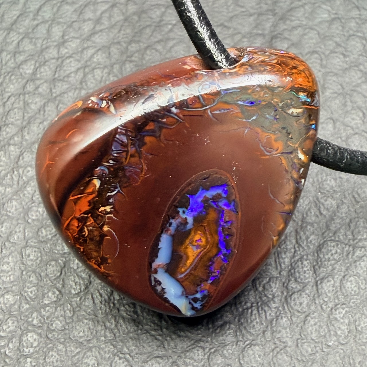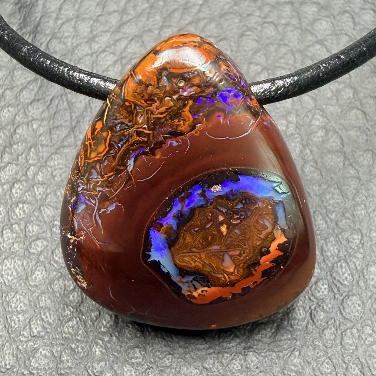 La technique de taille du pendentif en Opale Boulder est délicate en raison de la différence de dureté entre le minerai de fer, particulièrement dur, et l’opale, plus fragile.