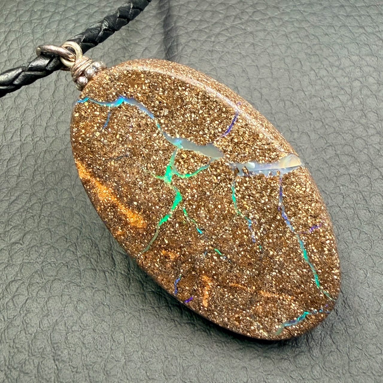 Le pendentif en opale boulder d’Australie, est une excellente façon d’utiliser une pierre de contact avec les esprits supérieurs et les anges.