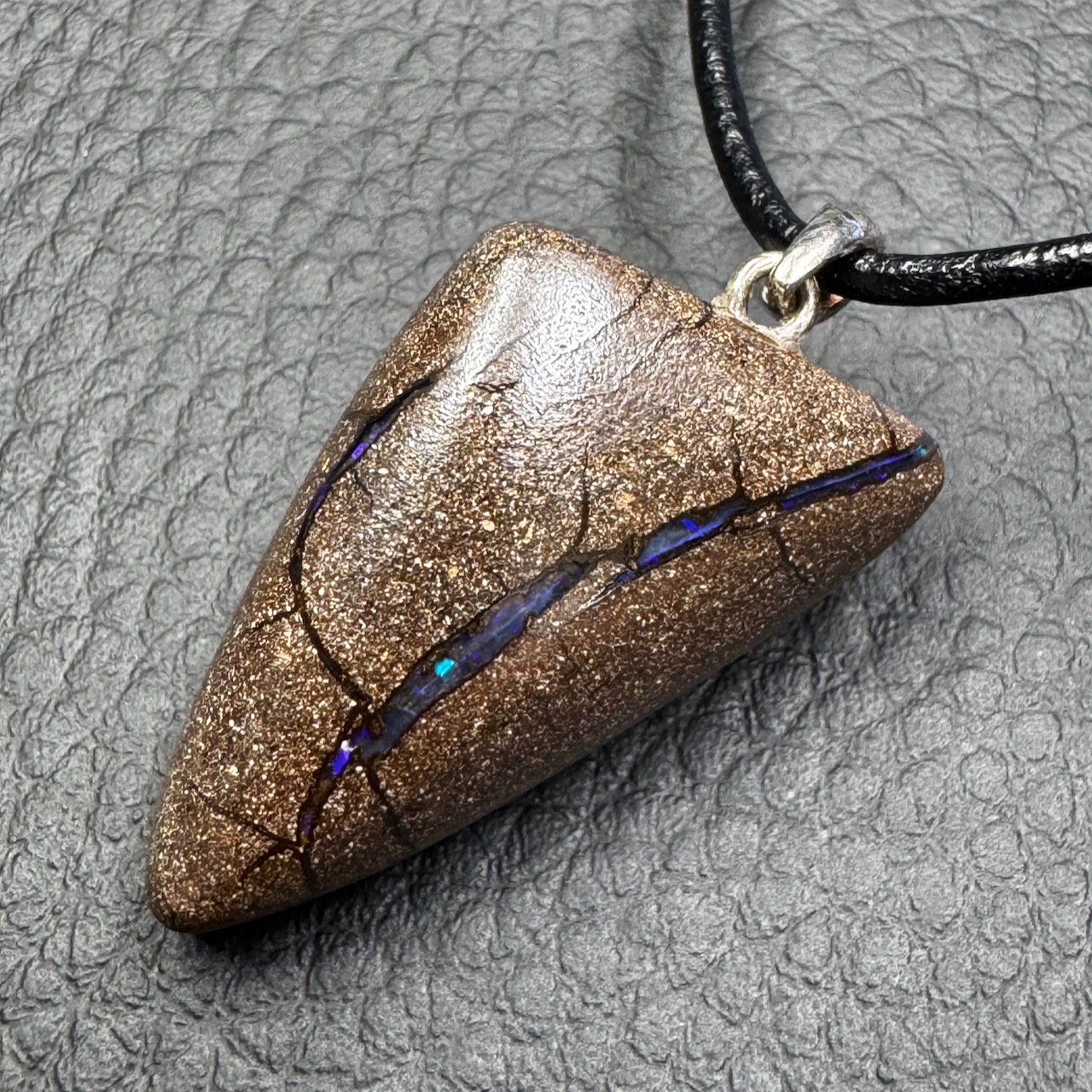 Cordon cuir fourni avec le Le pendentif en opale Boulder.