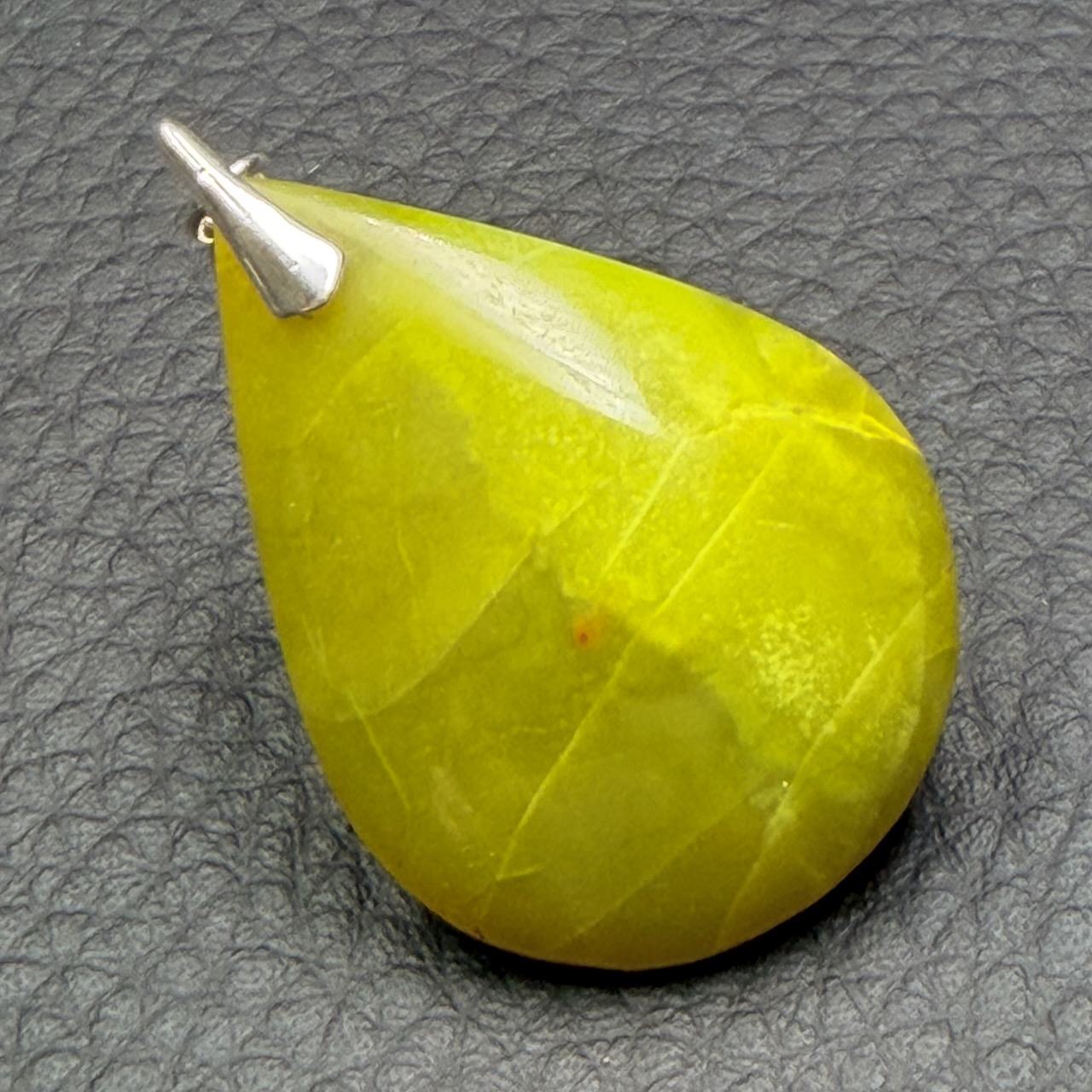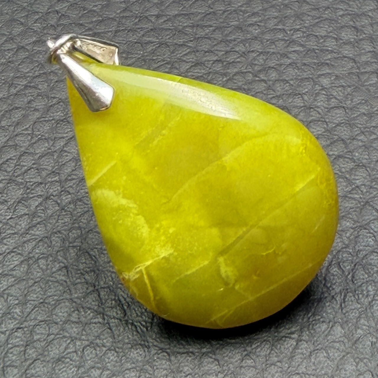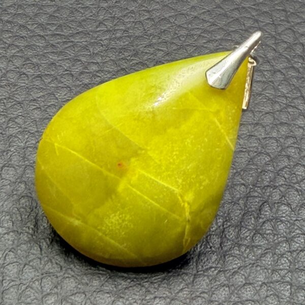 Sous forme de pendentif, l’opale verte de Madagascar permet une observation directe de sa structure et de sa couleur naturelle. Le polissage révèle la profondeur chromatique sans modifier la nature interne de la pierre.