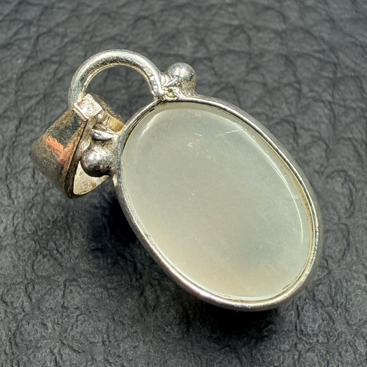 Taille du Pendentif en Pierre de Lune hors bélière 1,3 cm sur 1 cm sur 0,7 cm.