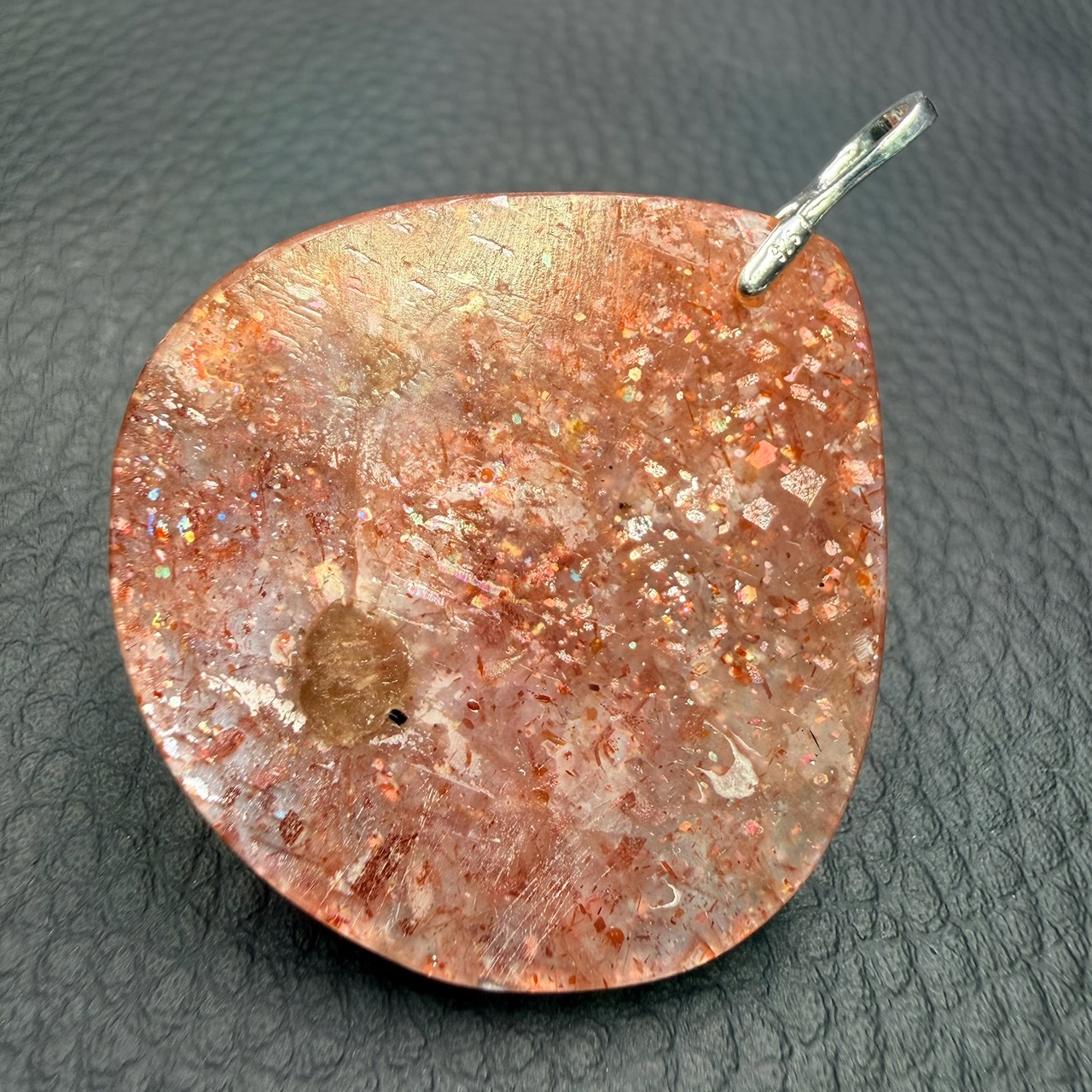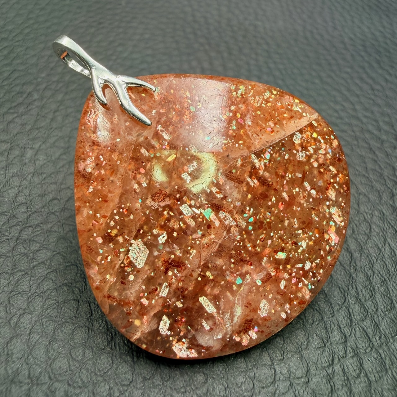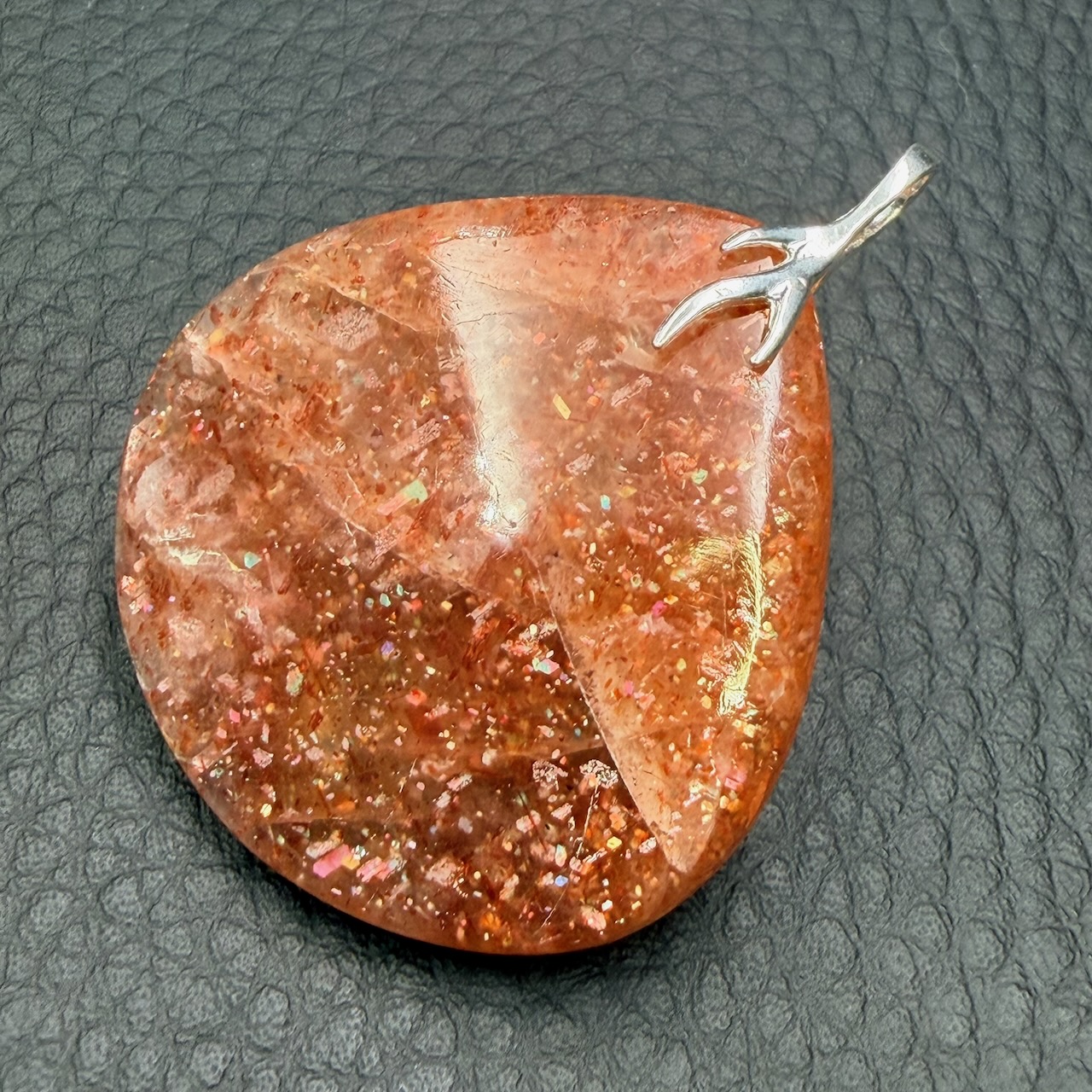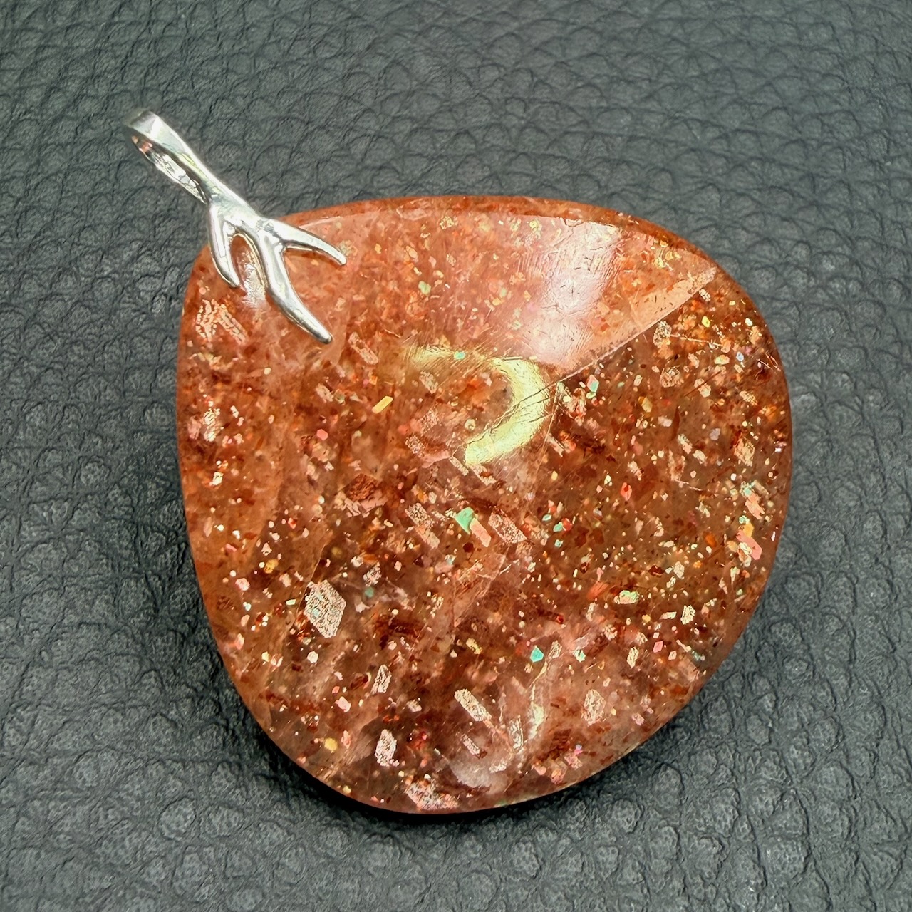 Lumière solaire : La pierre soleil est liée aux énergies solaires, donc exposer votre pendentif à la lumière directe du soleil pendant un court moment peut l’aider à se recharger. Évitez une exposition prolongée, car cela pourrait altérer la couleur de la pierre.