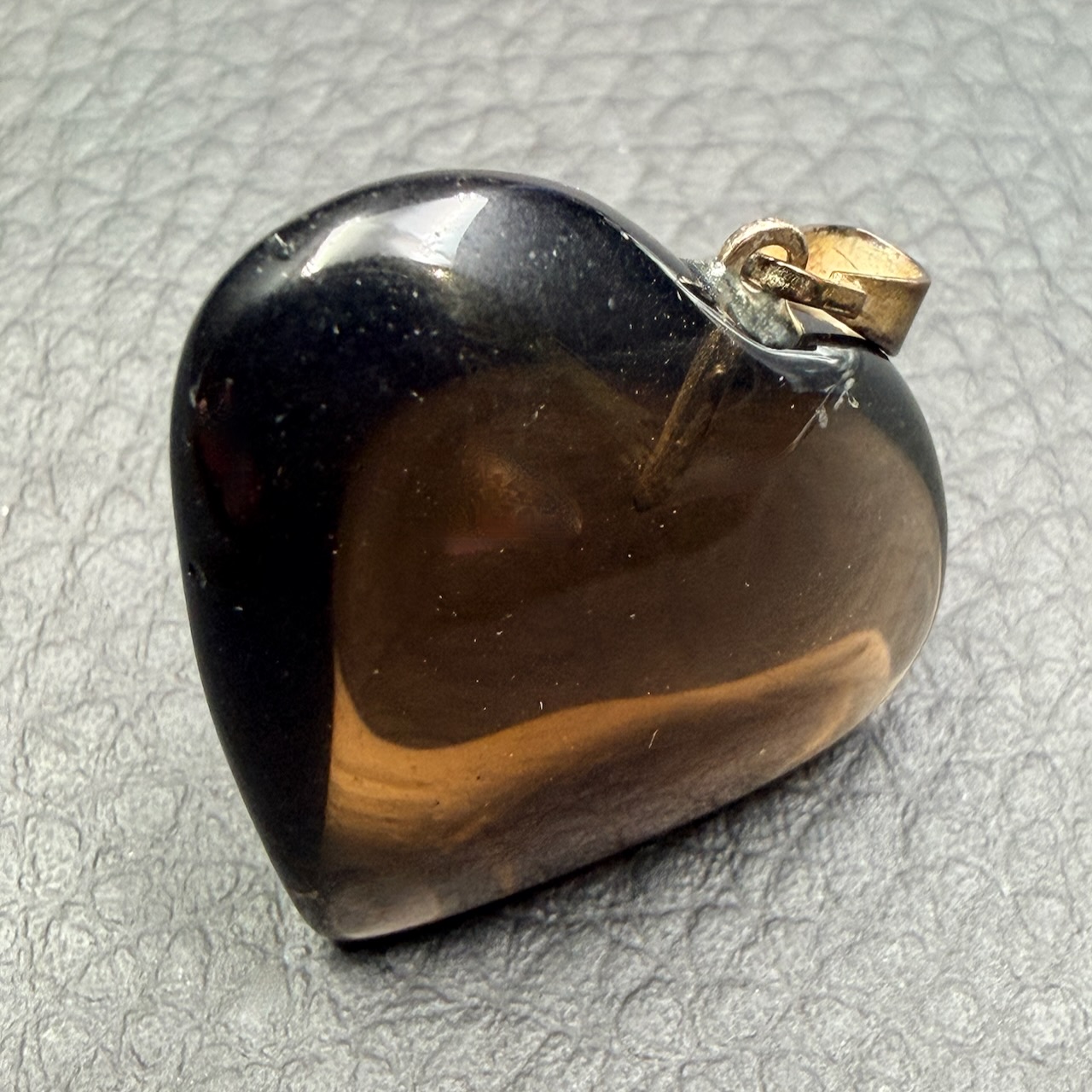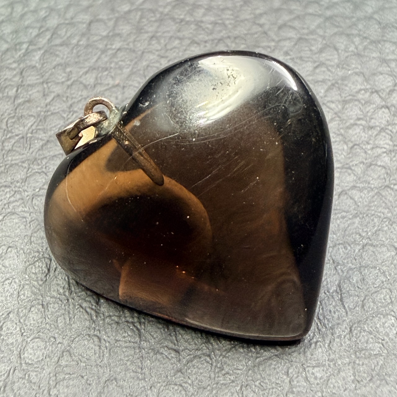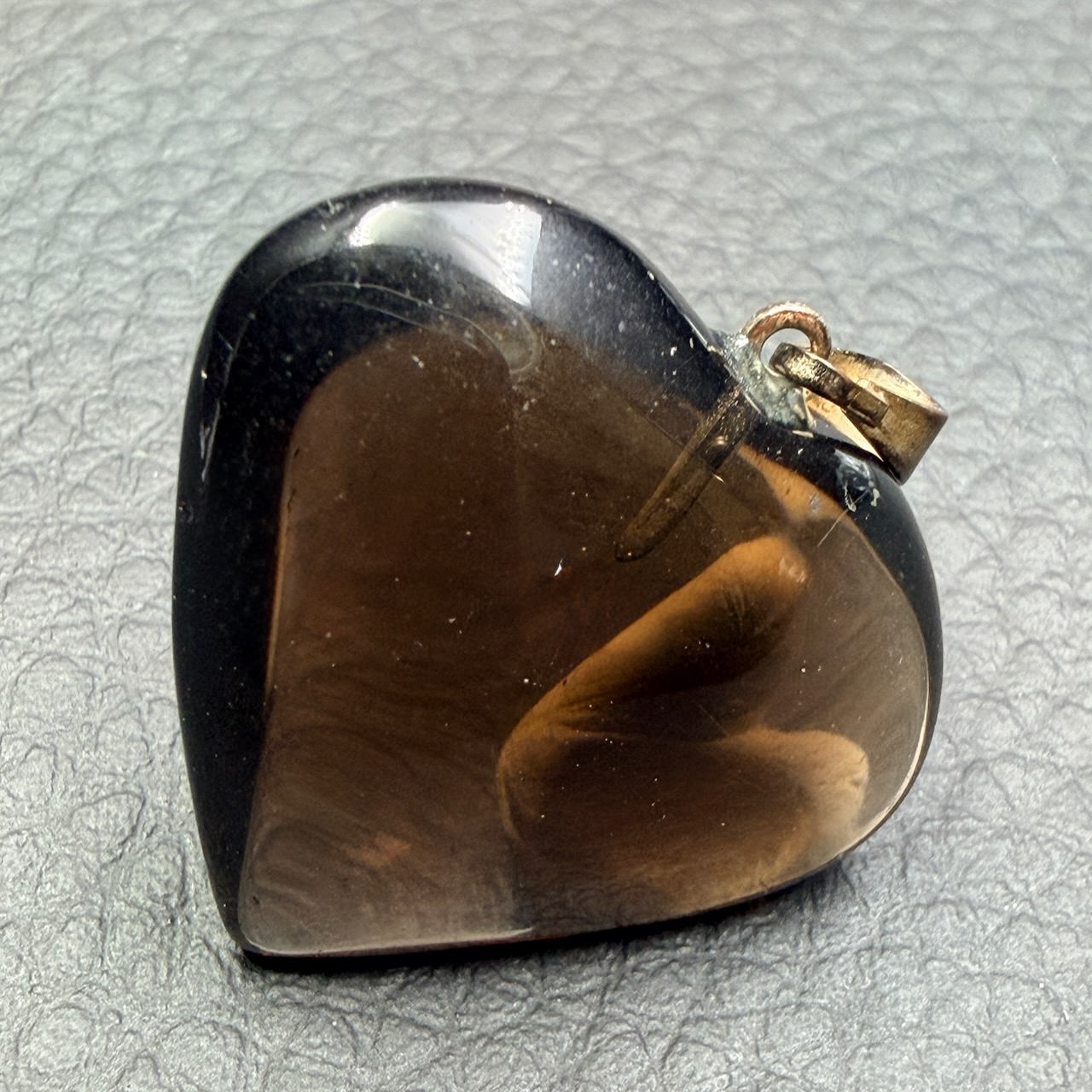 Taille du pendentif en quartz fumé 2,2 cm sur 2,6 cm sur 1 cm.