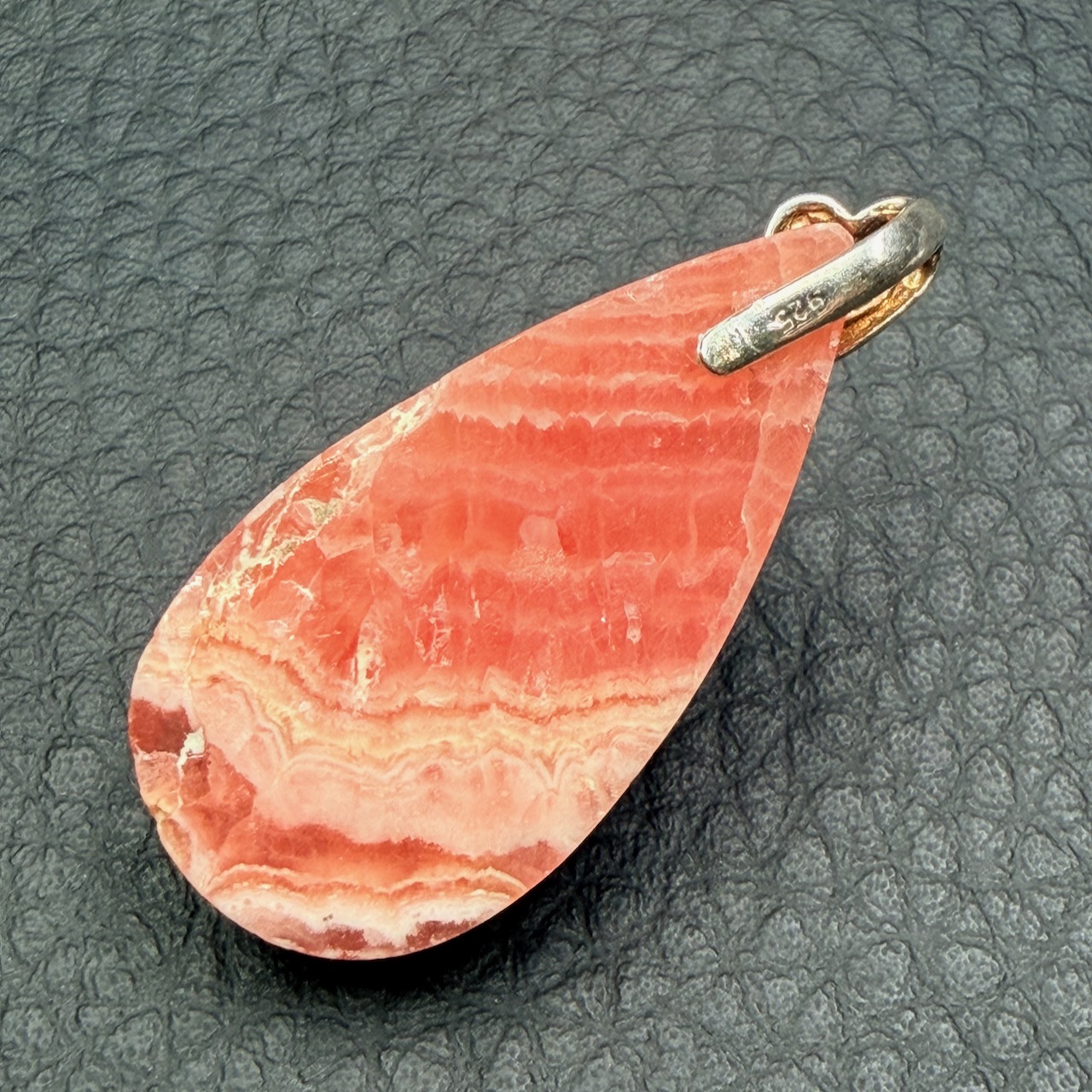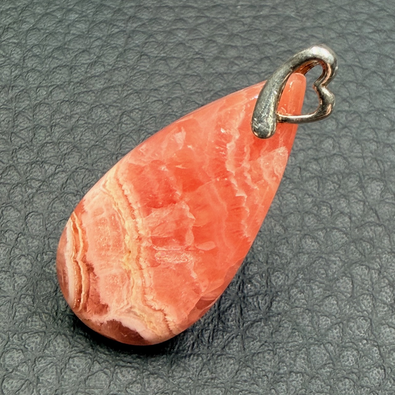 Taille du Pendentif en Rhodochrosite hors bélière 3,1 cm sur 1,6 cm sur 0,4 cm.