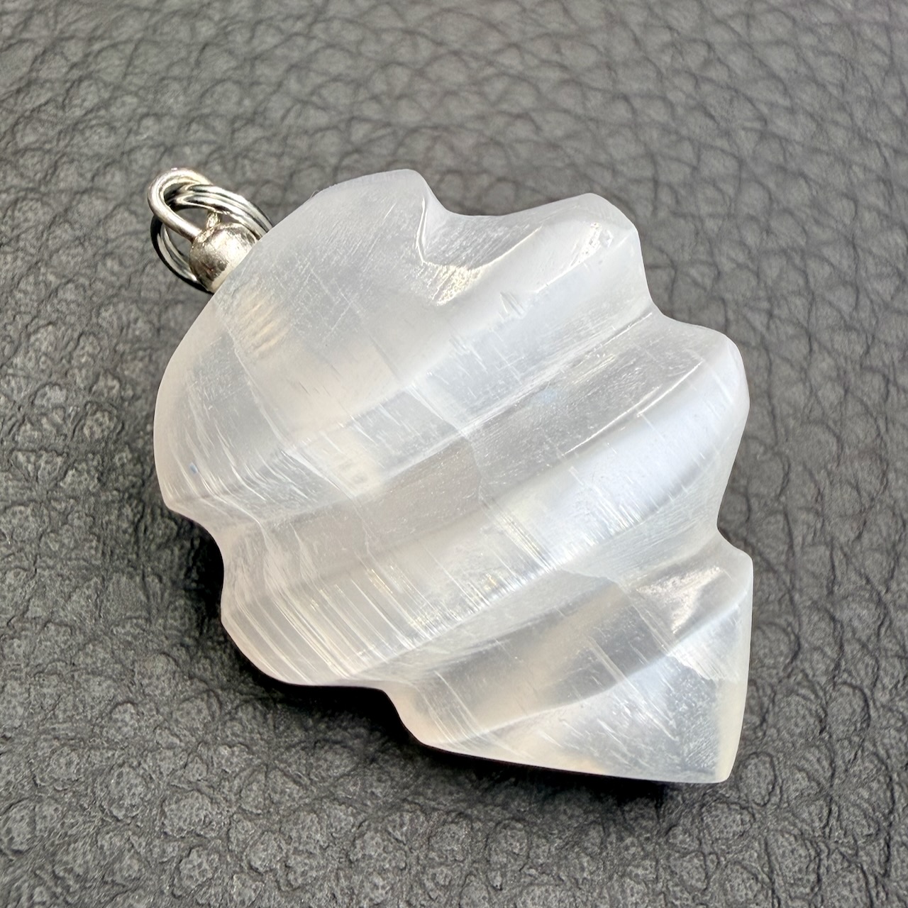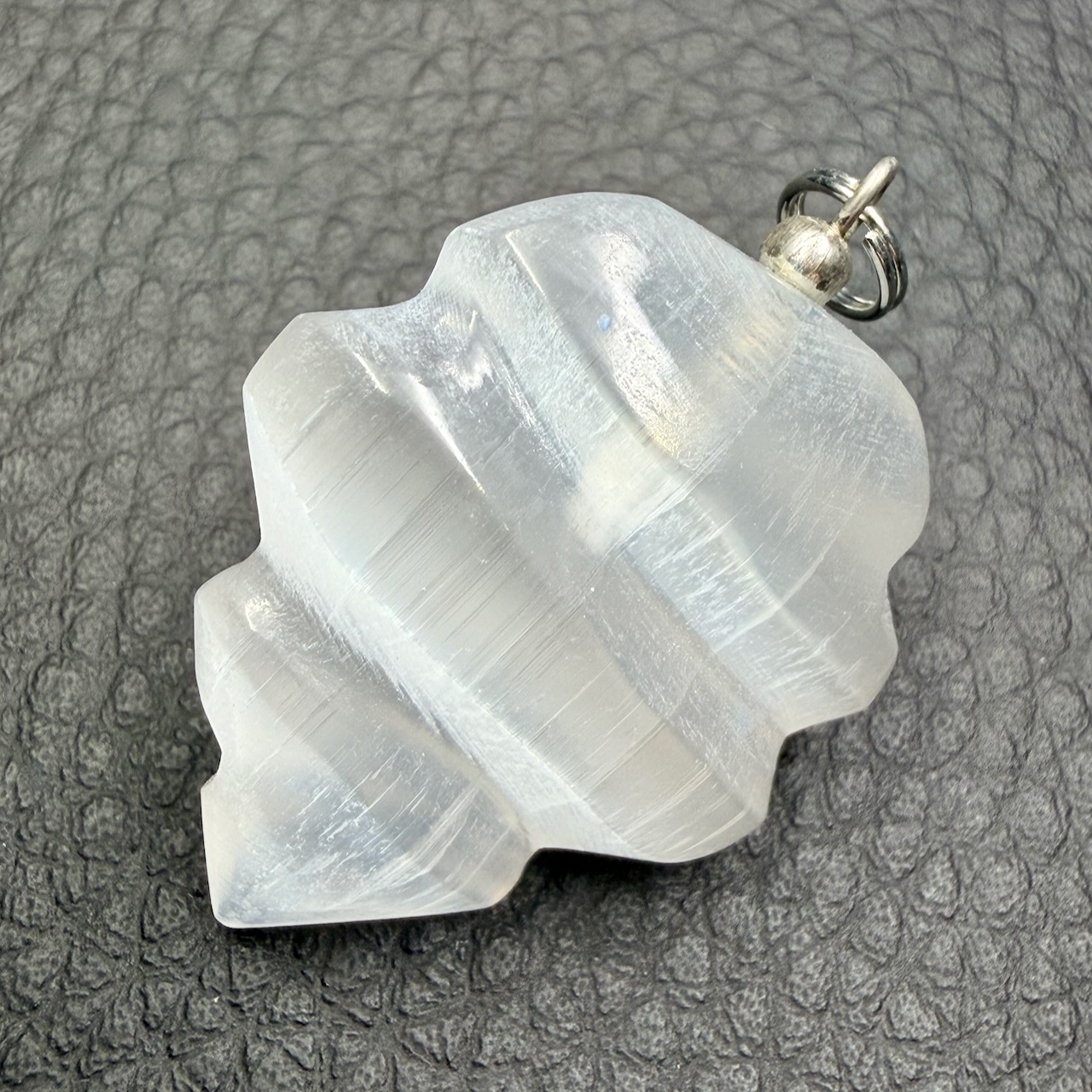 La sélénite est réputée pour ses propriétés apaisantes et purificatrices, ce qui en fait un choix idéal pour un pendentif.