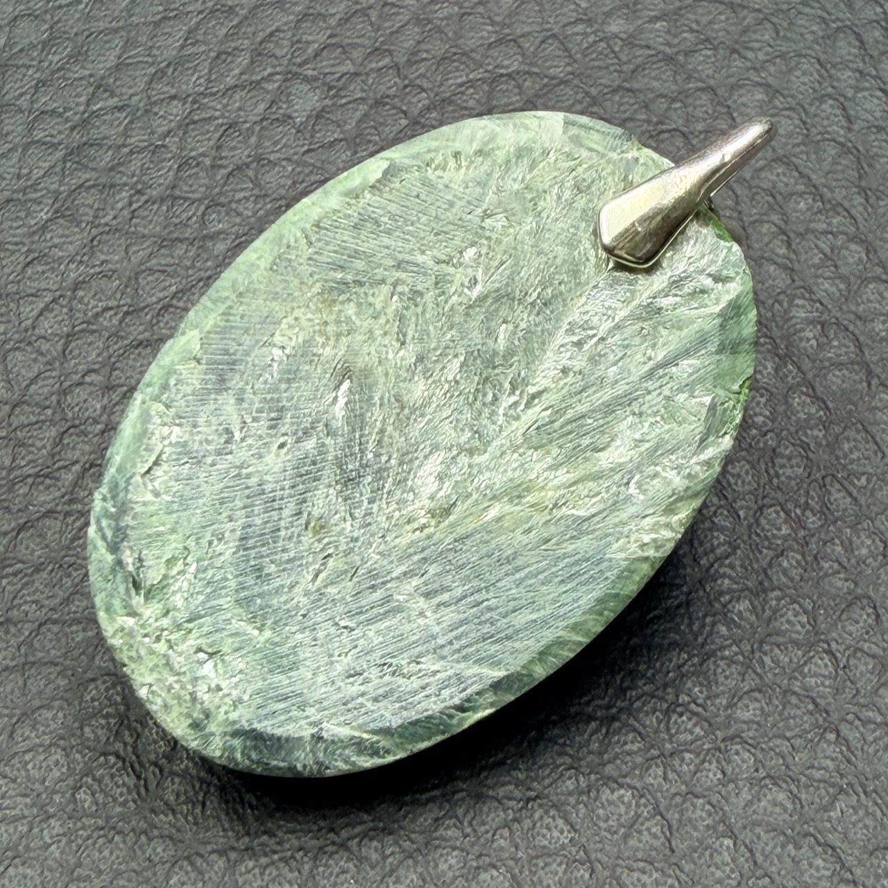 Taille du Pendentif en Séraphinite hors bélière 3,2 cm sur 2,2 cm sur 0,4 cm.