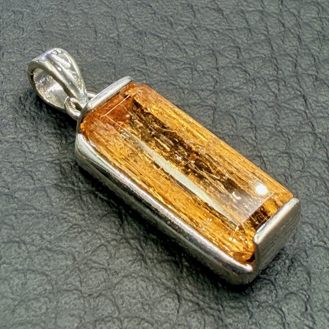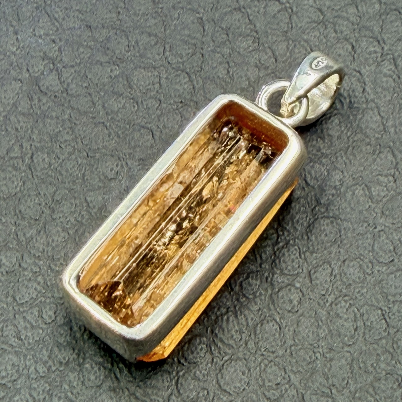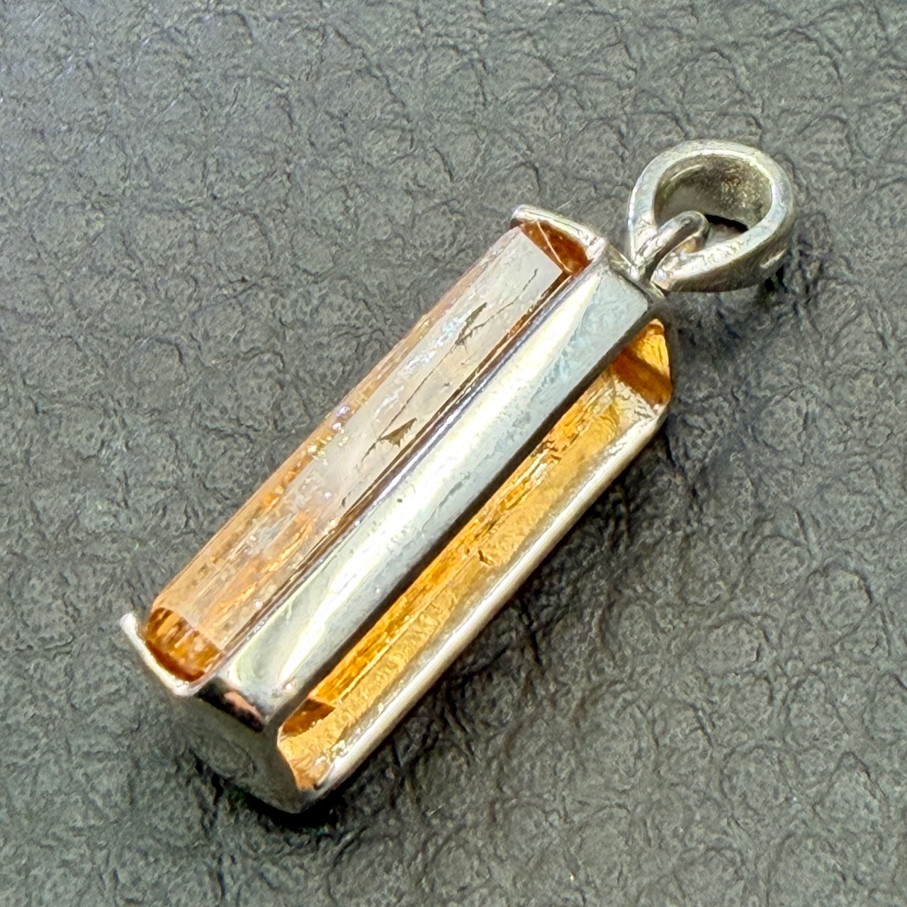 Taille de la pierre hors bélière 1,9 cm sur 0,7 cm sur 0,6 cm.