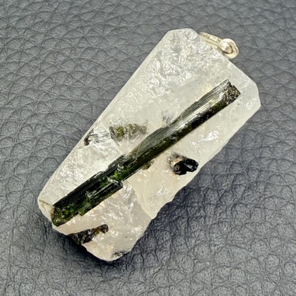 La tourmaline verte, lorsqu’elle est portée en pendentif, agit comme un purificateur énergétique. Elle aide à éliminer les énergies négatives de l’aura et à rétablir un équilibre énergétique. En filtrant les énergies environnantes, elle crée un champ de protection autour de la personne, l’aidant à se sentir plus alignée et ancrée.