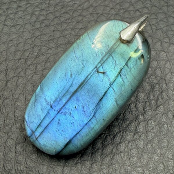 La couleur bleue de la Labradorite, telle que dans le bijoux « Pendentif Labradorite Bleu Lagon », est due à la labradorescence, un phénomène optique.