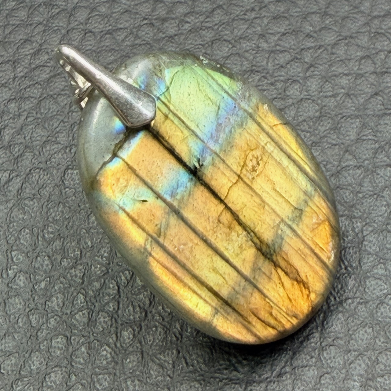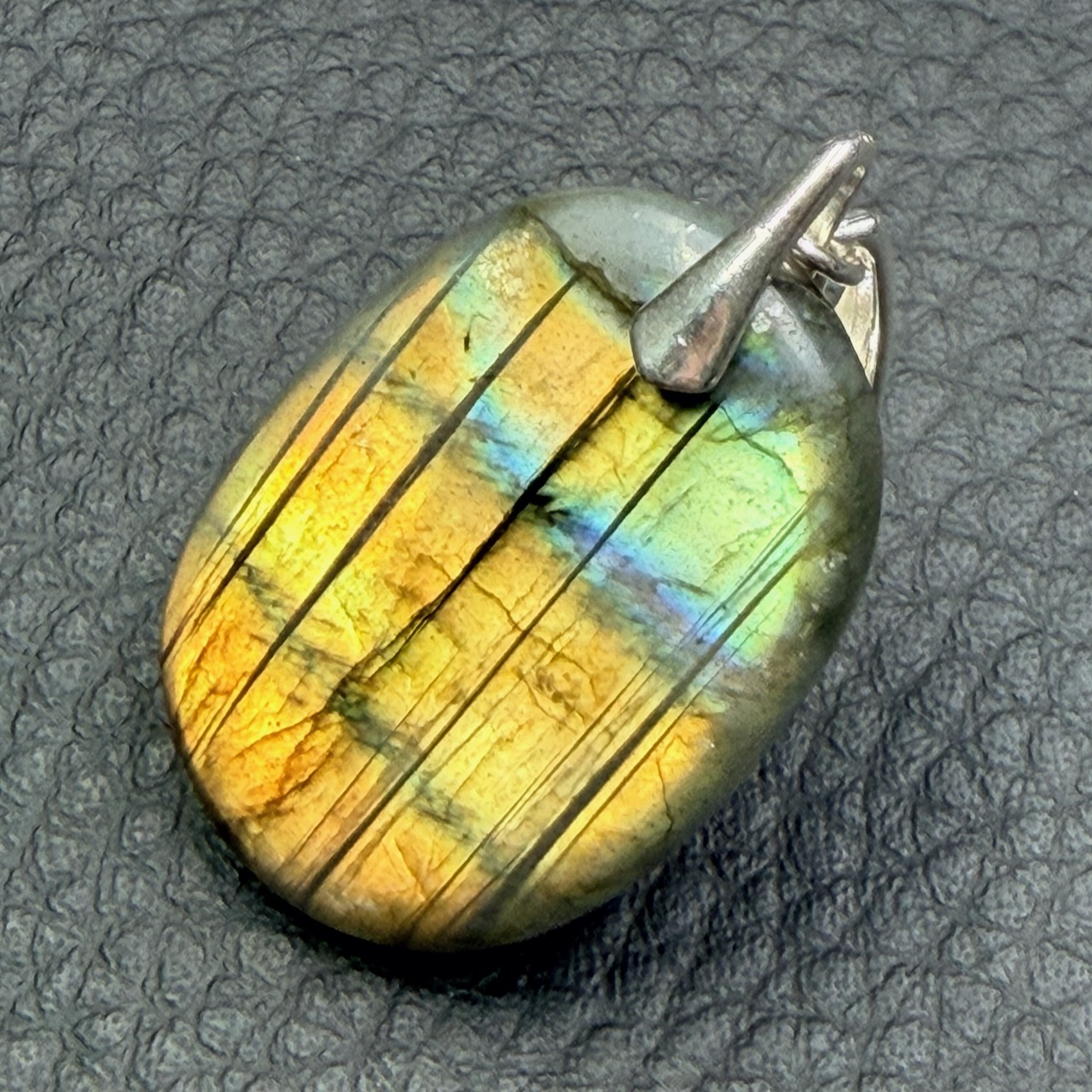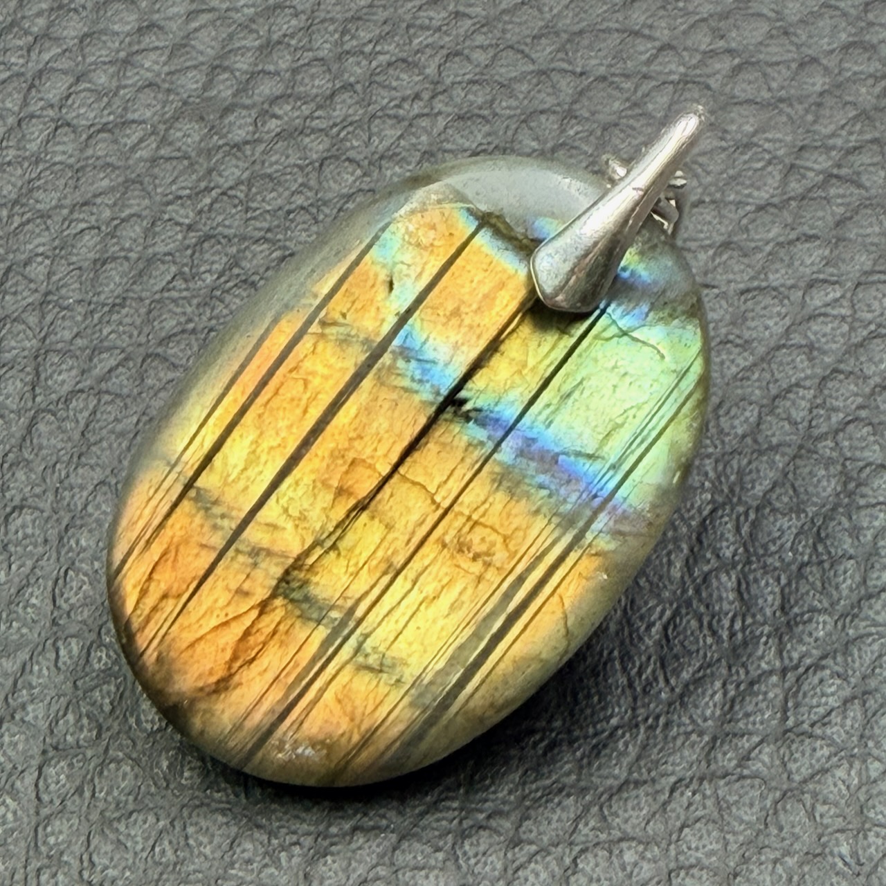 Sublimant les teintes de l’arc-en-ciel, le pendentif en labradorite se présente comme une éclatante révélation de cette pierre exceptionnelle.