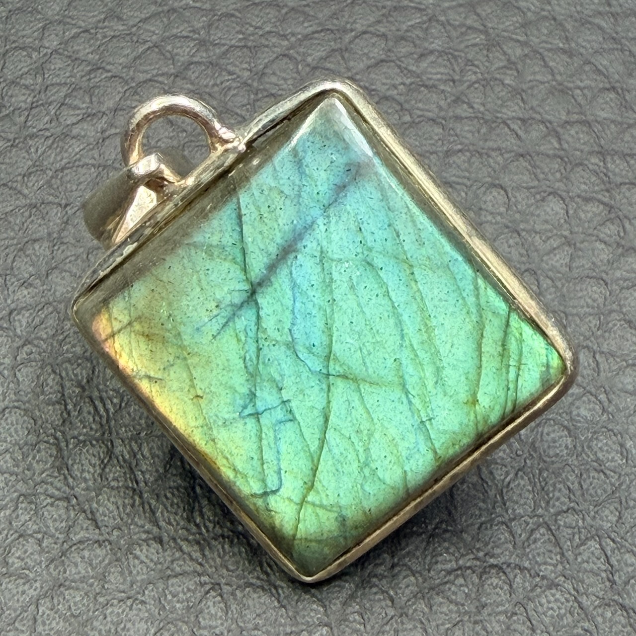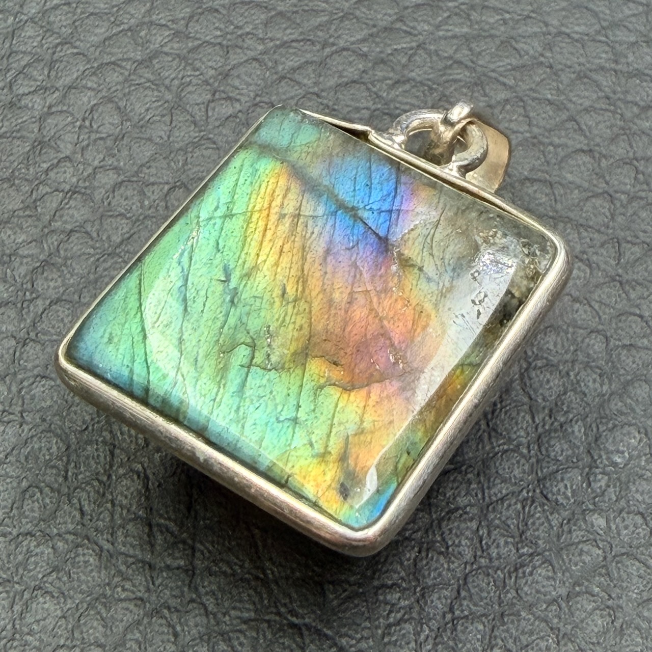 Taille du Pendentif Labradorite Spéctrolite 2,2 cm sur 2 cm sur 0,6 cm.