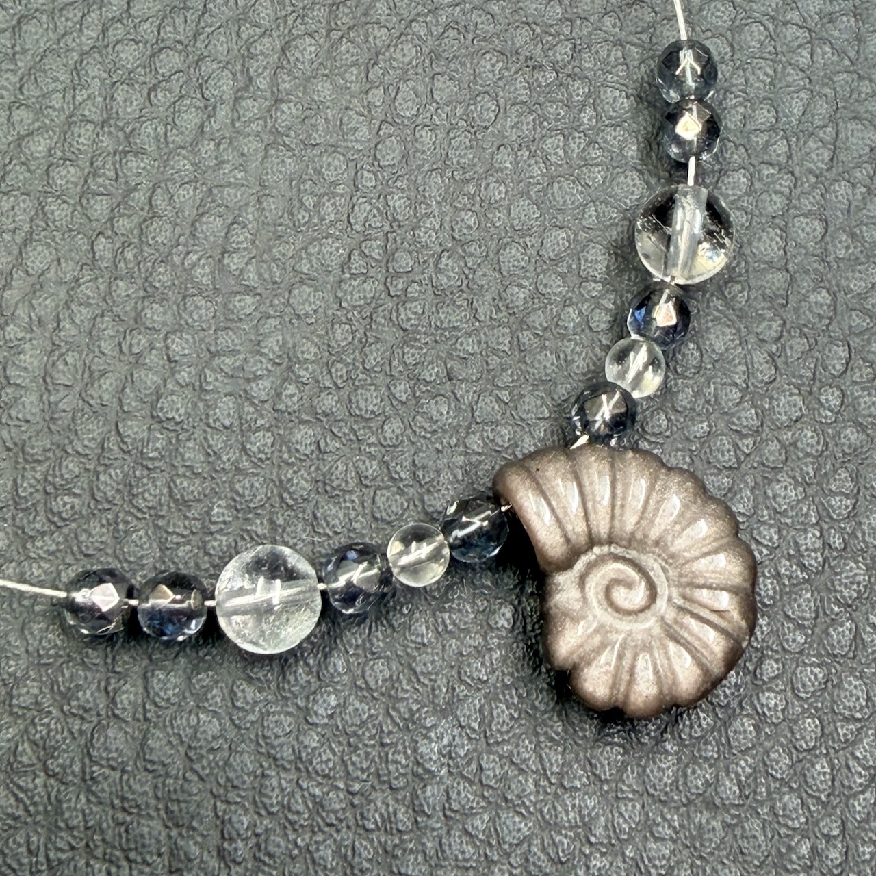 Son originalité, sa forme d’ammonite et la présence des perles de cristal de roche et de quartz gris en font aussi une belle idée cadeau pour une personne qui aime les bijoux naturels et différents.