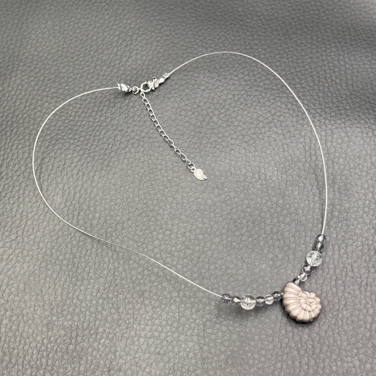 Cette composition donne naissance à un bijou équilibré, à la fois élégant, minéral et facile à porter au quotidien. Avec sa forme d’ammonite, ce pendentif ne ressemble pas à un modèle classique : il possède un vrai caractère et une identité visuelle forte.