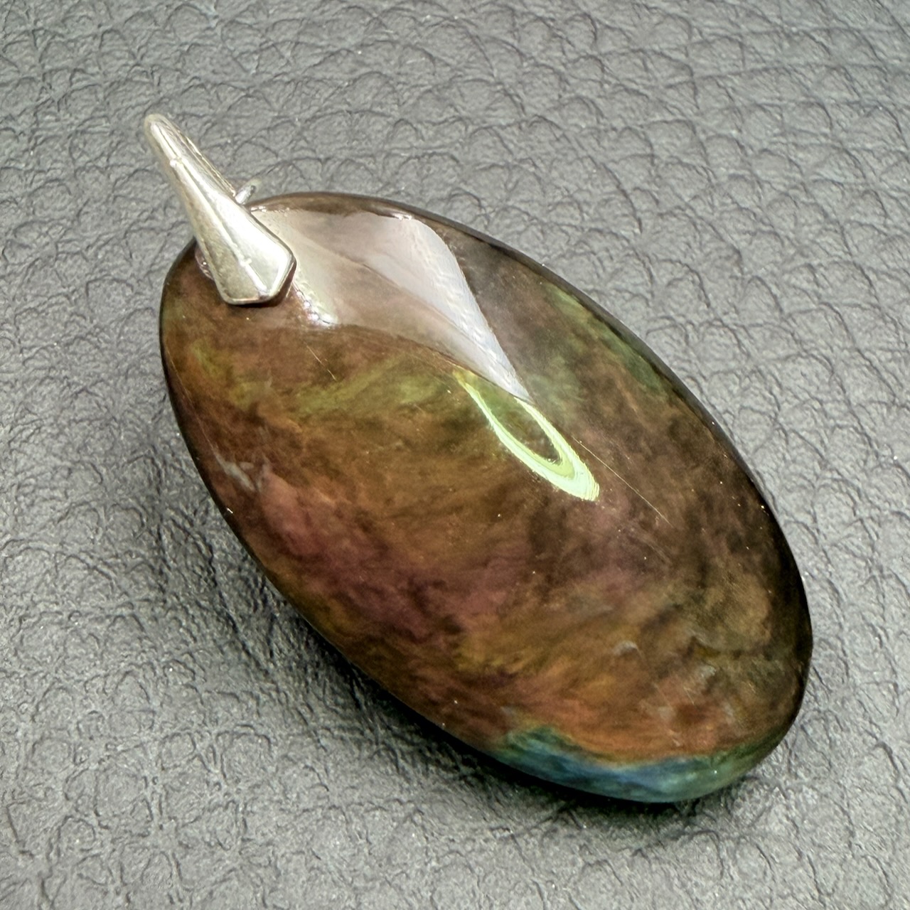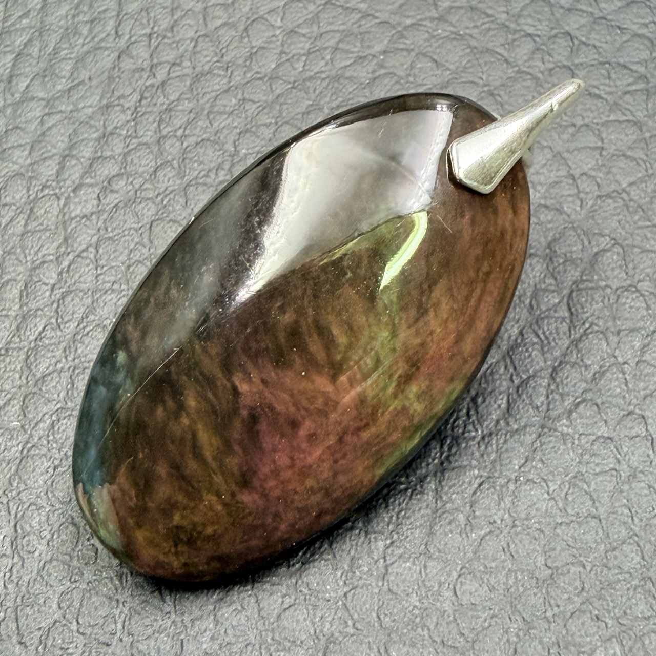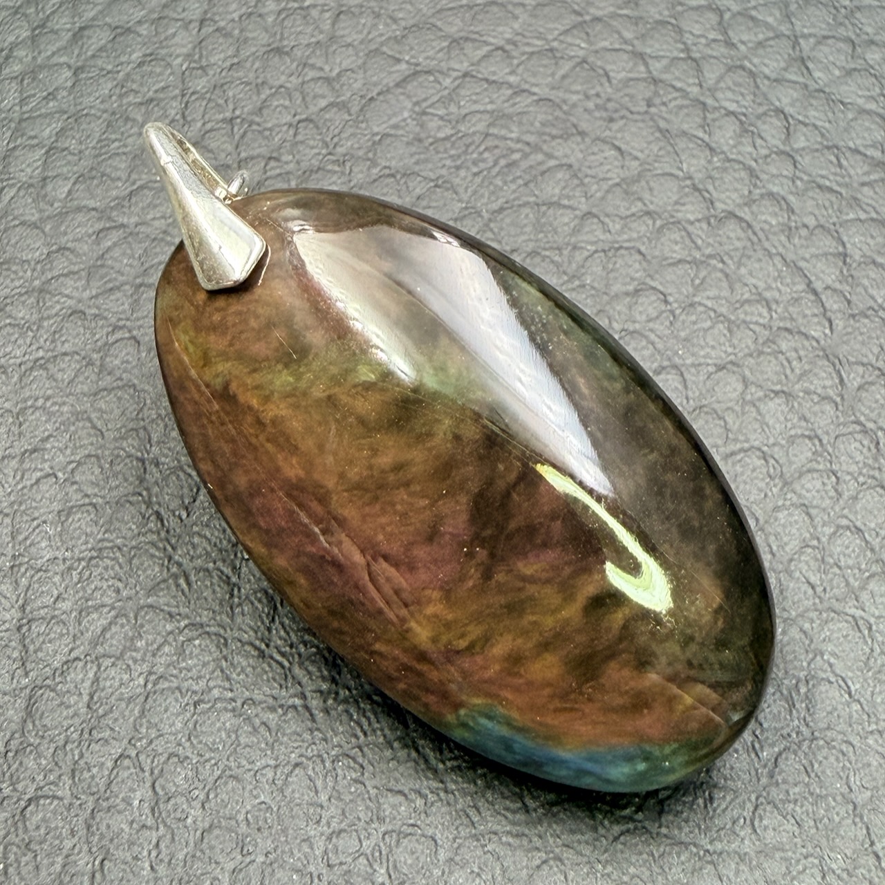 Le pendentif obsidienne Manta Huichol se distingue par ses motifs voilés, semblables aux volutes d’une fumée ancestrale capturée dans la pierre. Ses nuances profondes oscillent entre noir de jais et reflets soyeux, lui conférant une aura envoûtante et presque hypnotique.