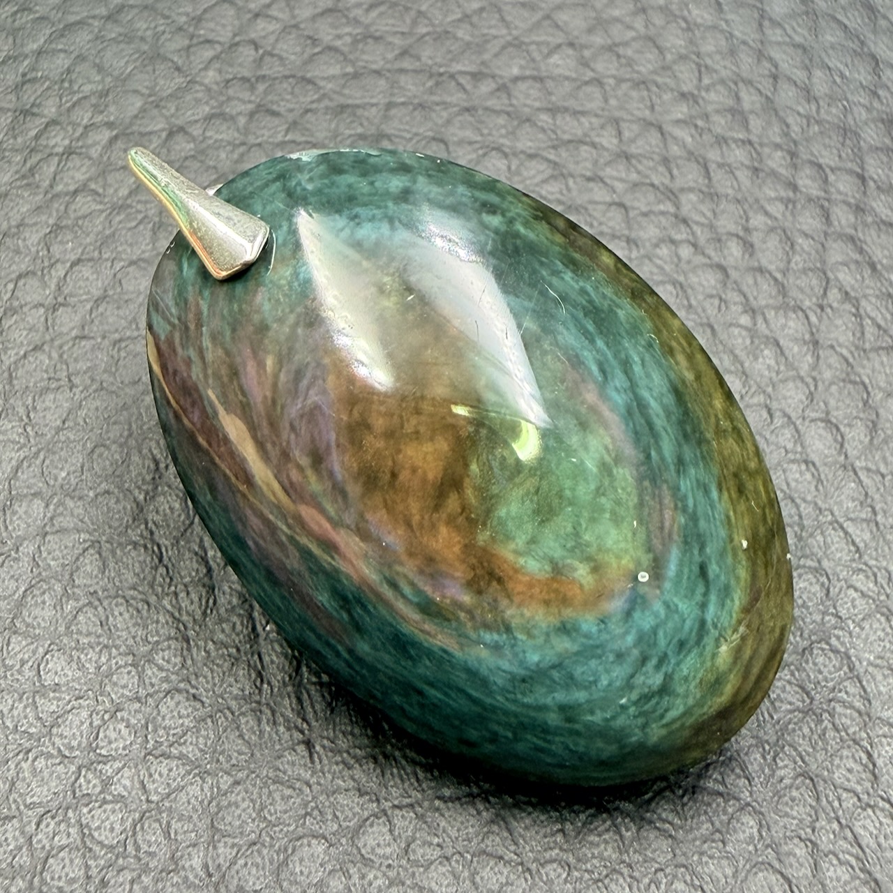 Le pendentif obsidienne Manta Huichol se distingue par ses motifs voilés, semblables aux volutes d’une fumée ancestrale capturée dans la pierre. Ses nuances profondes oscillent entre noir de jais et reflets soyeux, lui conférant une aura envoûtante et presque hypnotique.