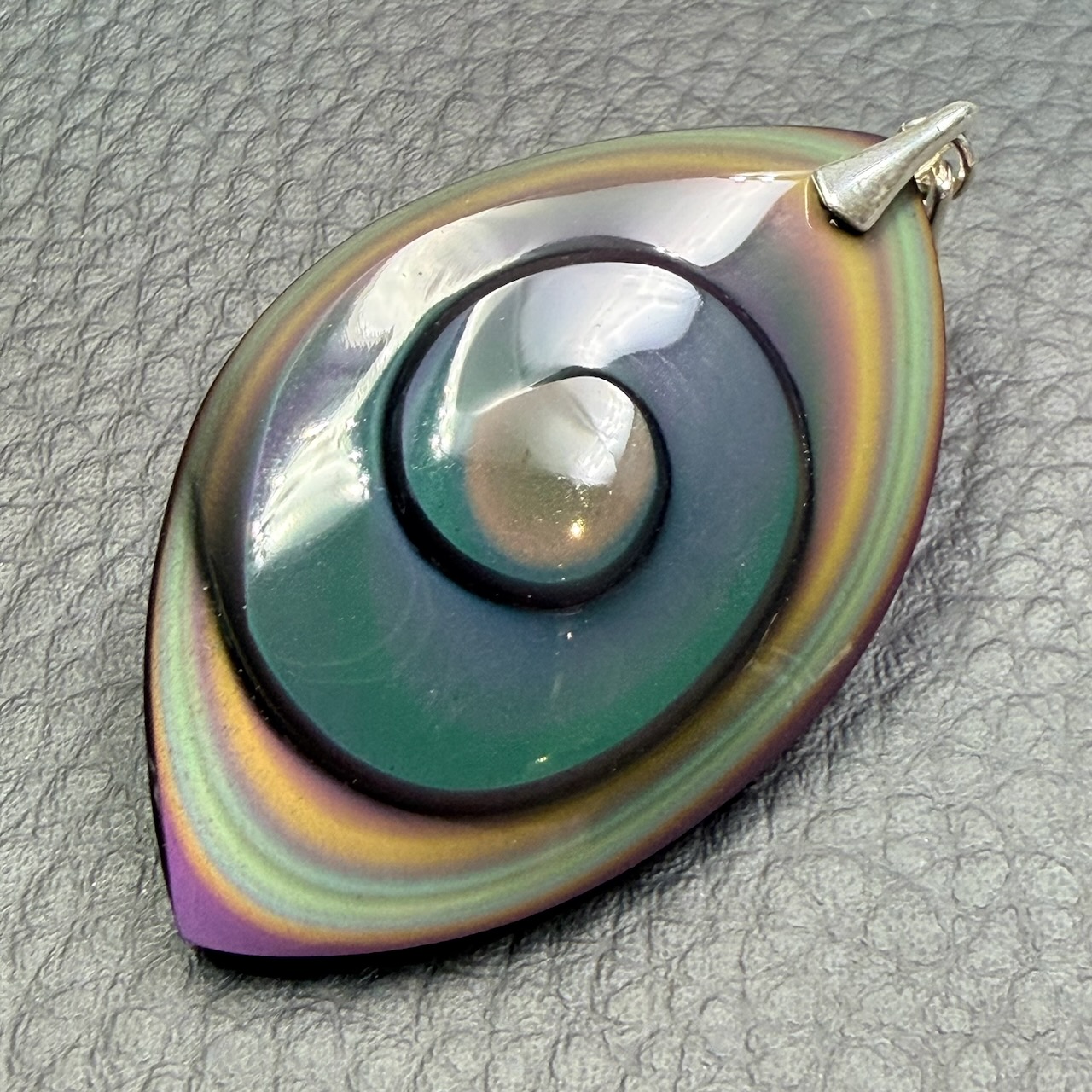 Le pendentif Obsidienne oeil céleste est une manière de sublimer les couleurs de la pierre.