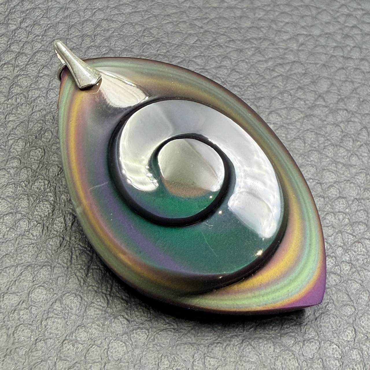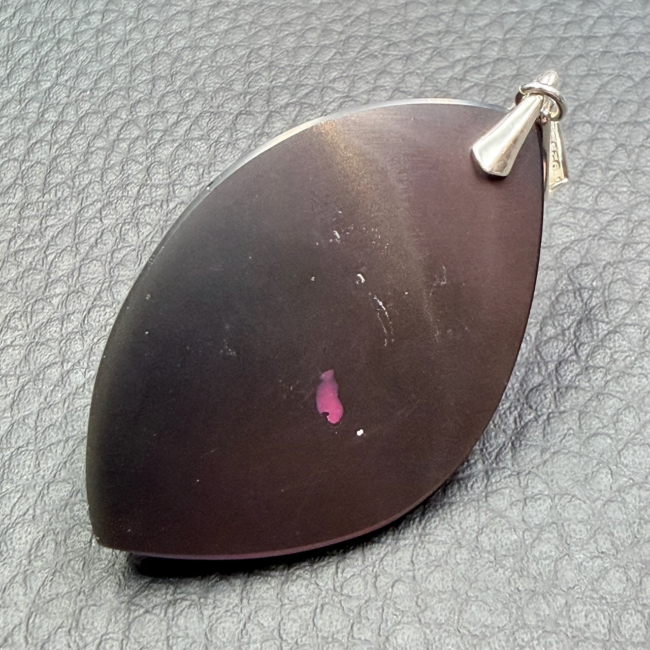 Taille du Pendentif Obsidienne Oeil Céleste 4,4 cm sur 2,8 cm sur 0,9 cm.