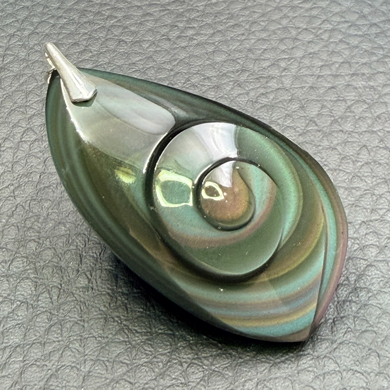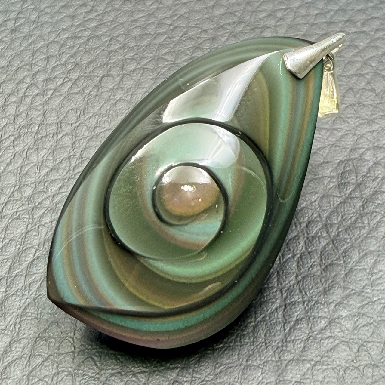Le pendentif Obsidienne oeil céleste est une manière de sublimer les couleurs de la pierre.