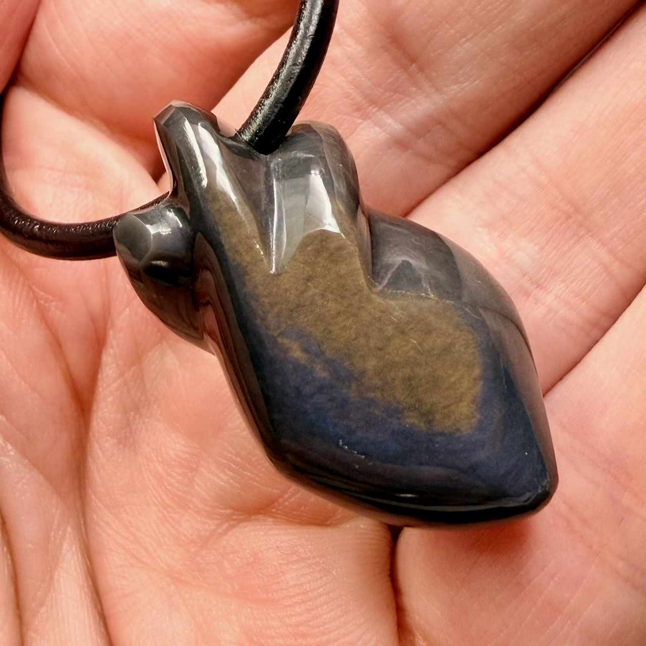 Pierre de protection le pendentif obsidienne oeil céleste donne énergie pour poursuivre son introspection, pour éloigner les influences négatives qui viennent de soi et pour avoir le courage d’atteindre la vérité.
