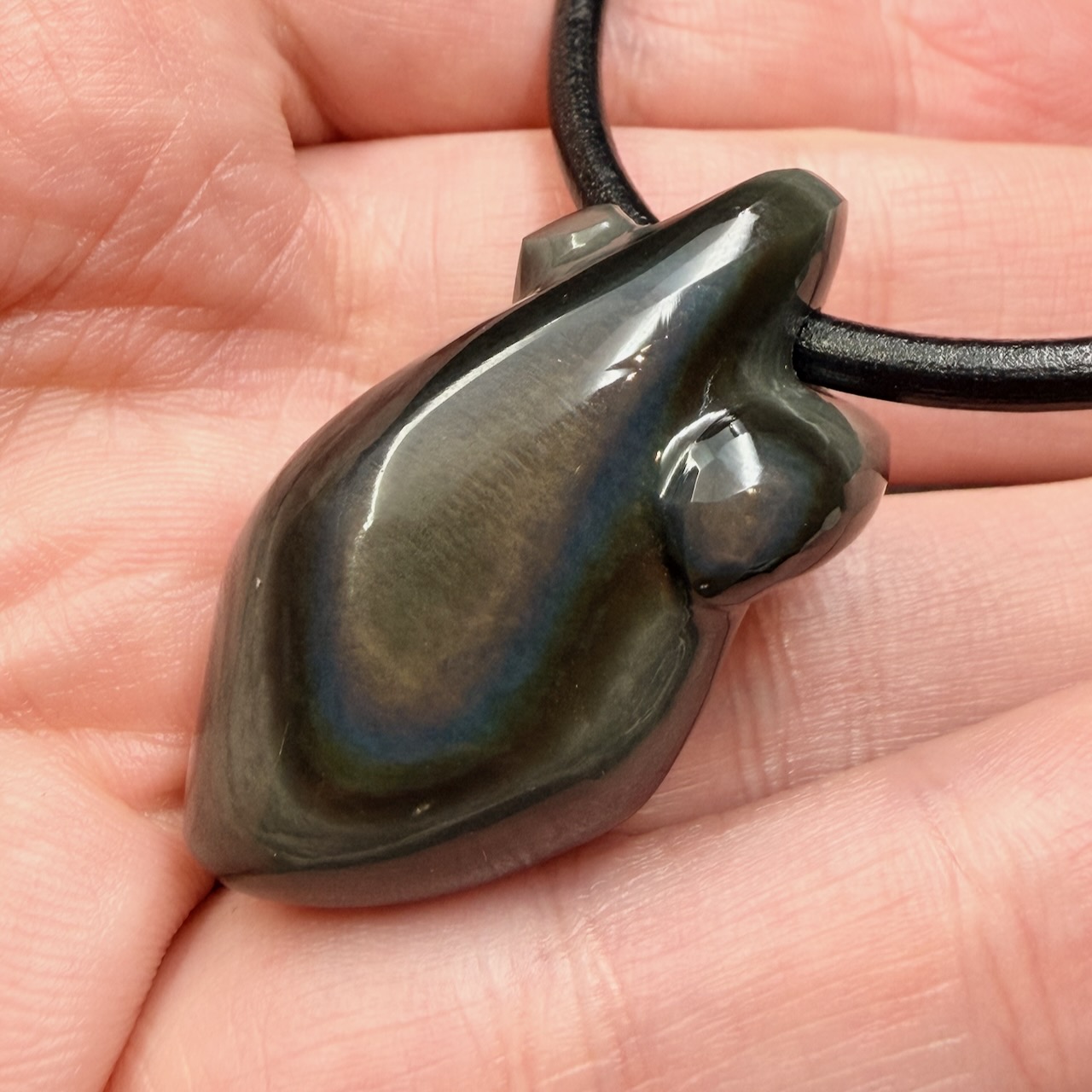 Le pendentif Obsidienne oeil céleste est une manière de sublimer les couleurs de la pierre.