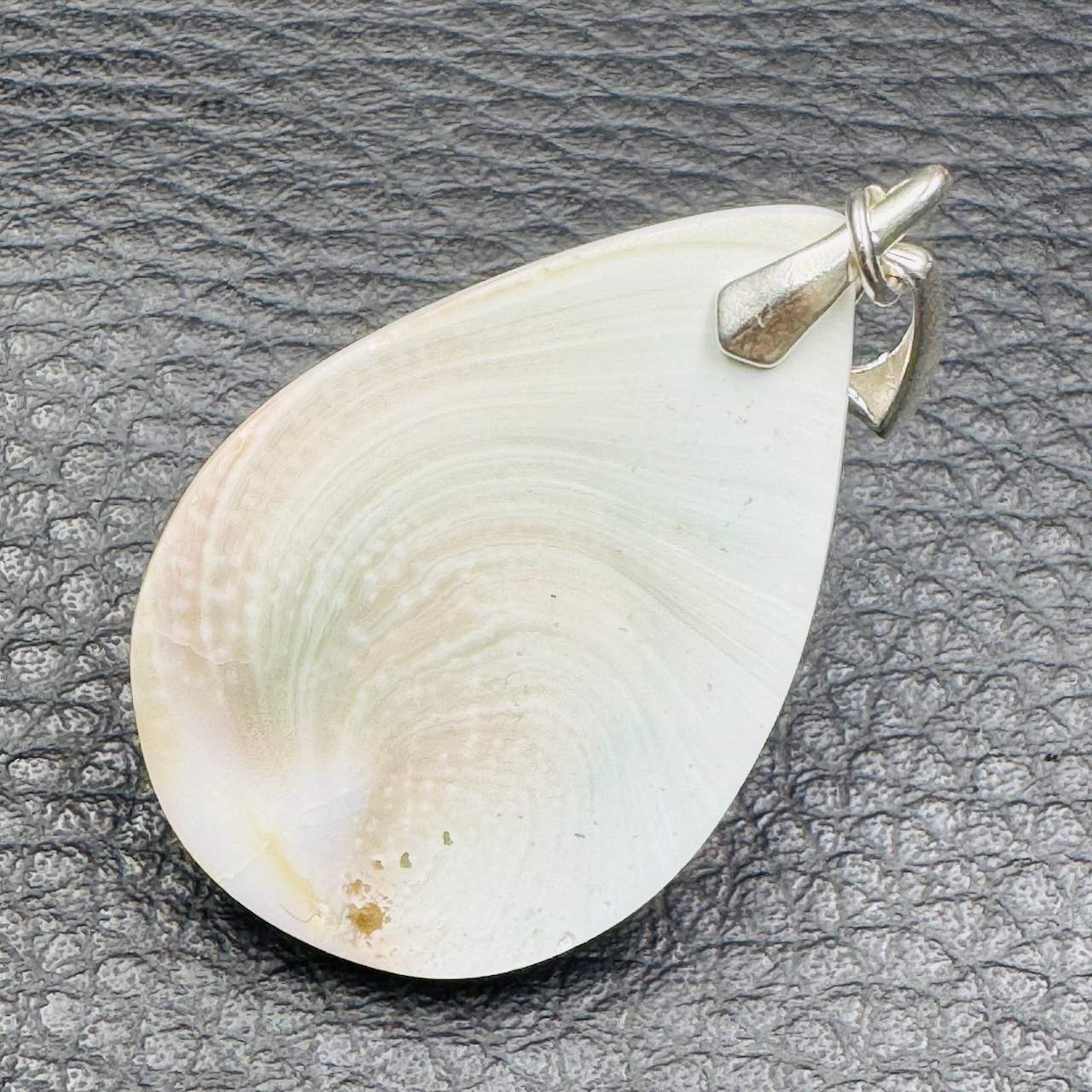 Taille du Pendentif Oeil de Sainte Lucie hors bélière 3,2 cm sur 2,3 cm sur 0,6 cm.