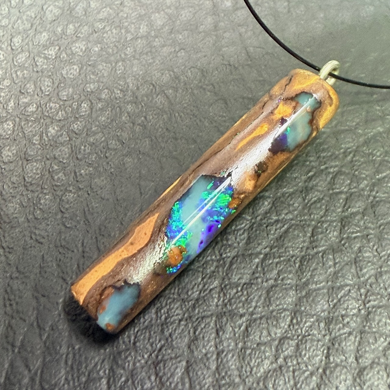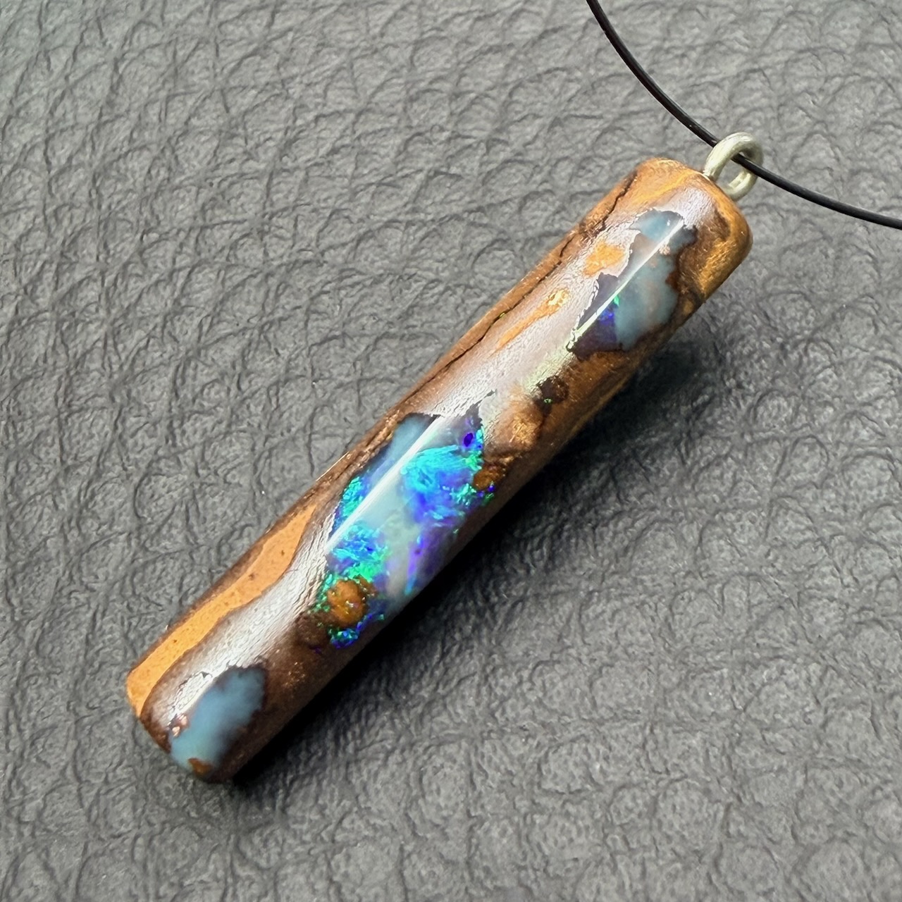 Taille du pendentif opale boulder d’Australie 2,9 cm sur 0,6 cm sur 0,4 cm.