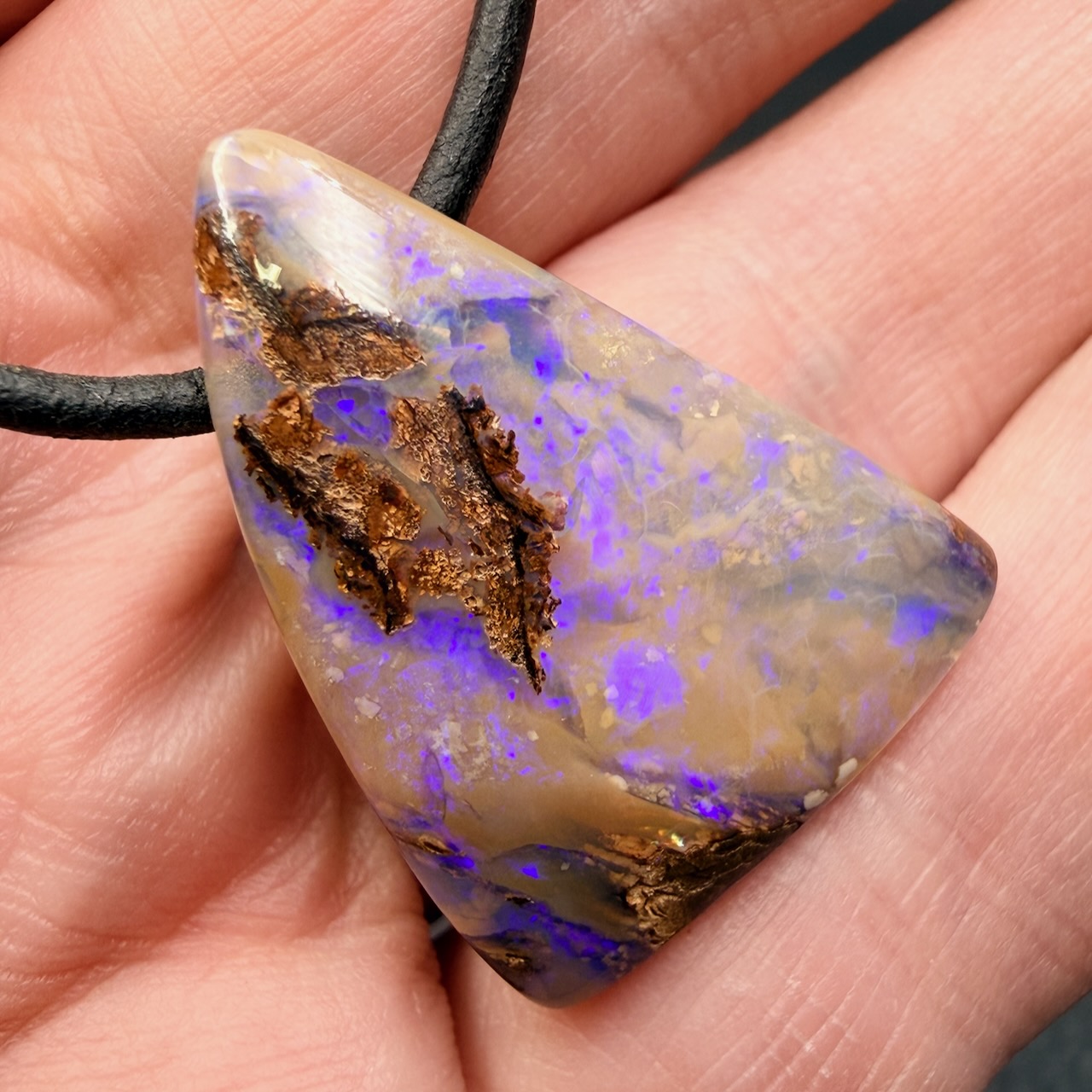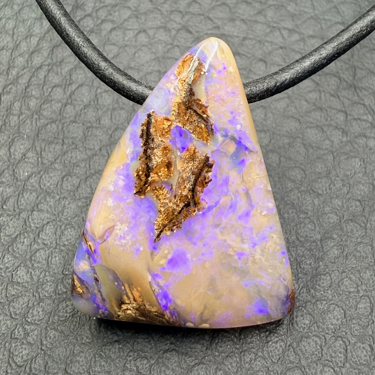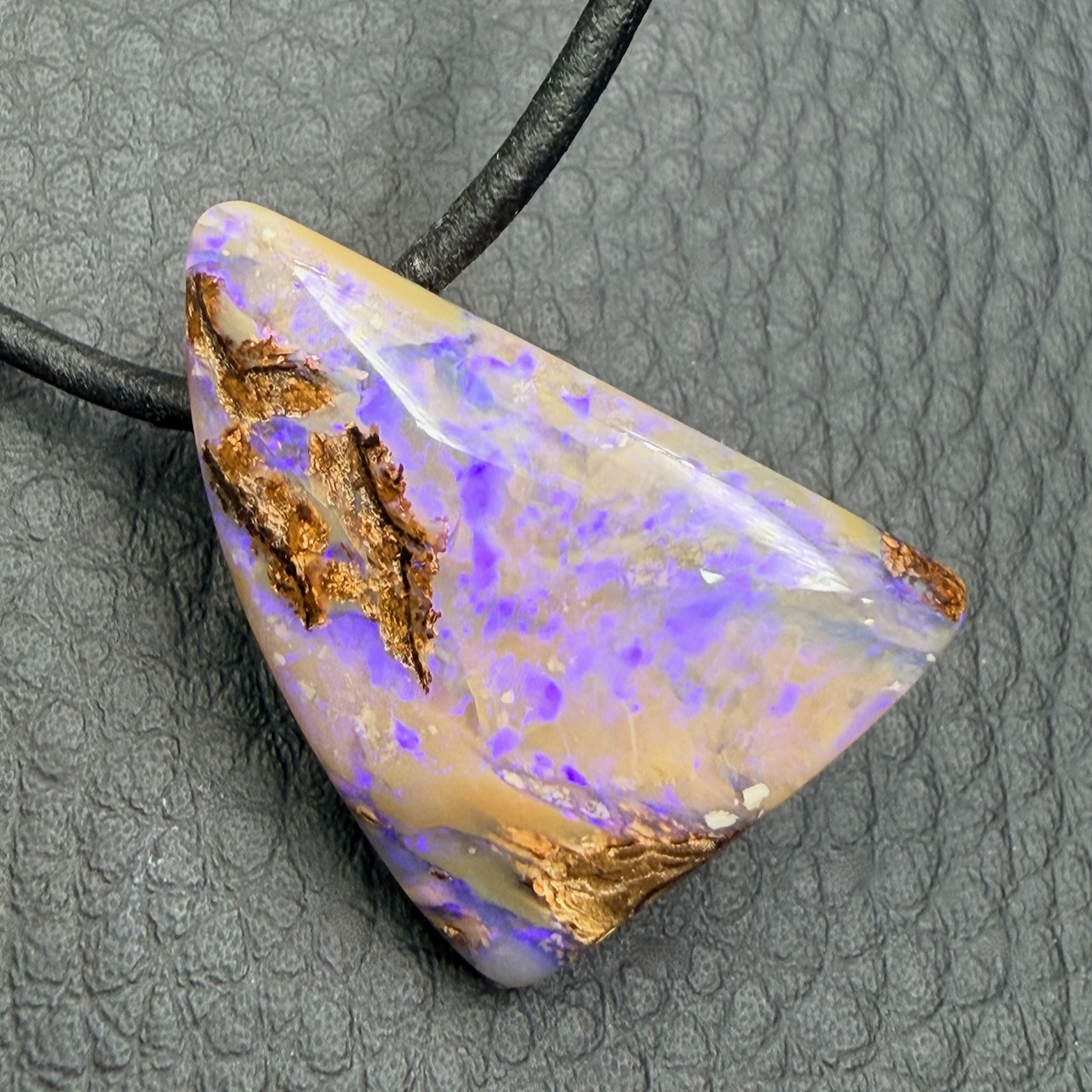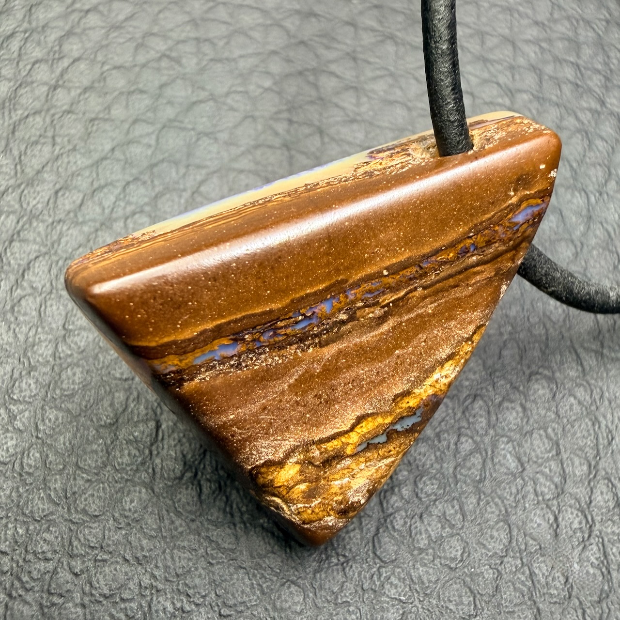 Un pendentif opale Boulder doit offrir un paysage. Une faille, une rivière de lumière, une étoile isolée, une ligne flamboyante : la pierre doit évoquer un mouvement.