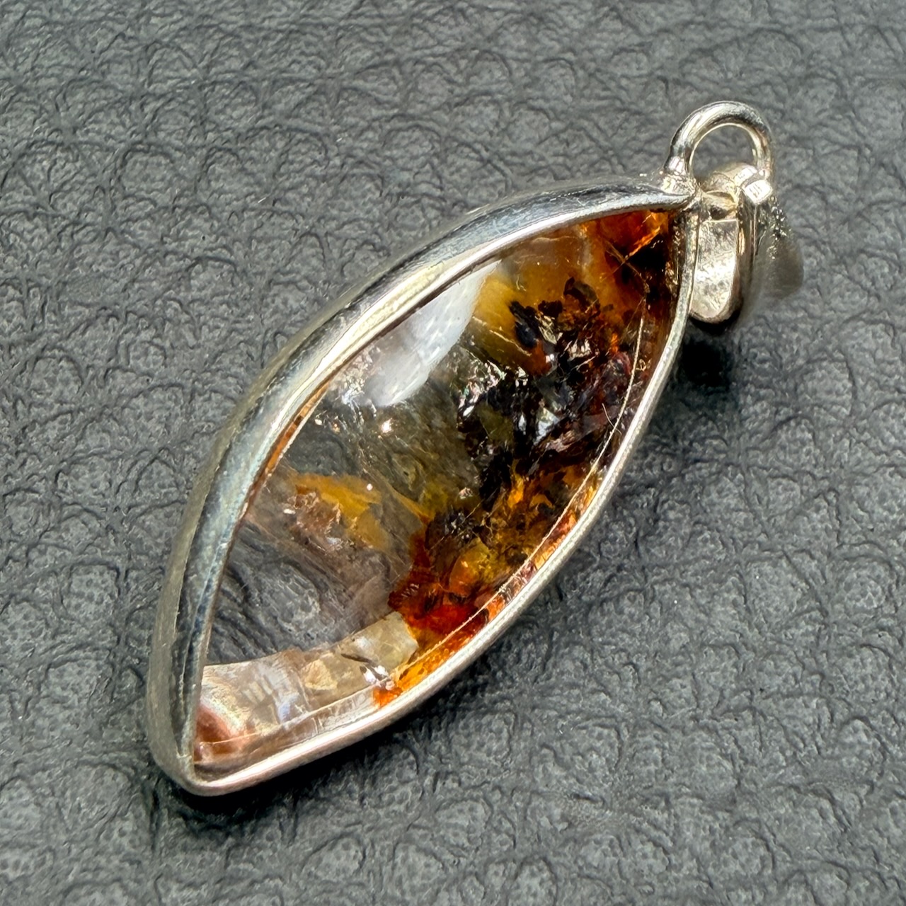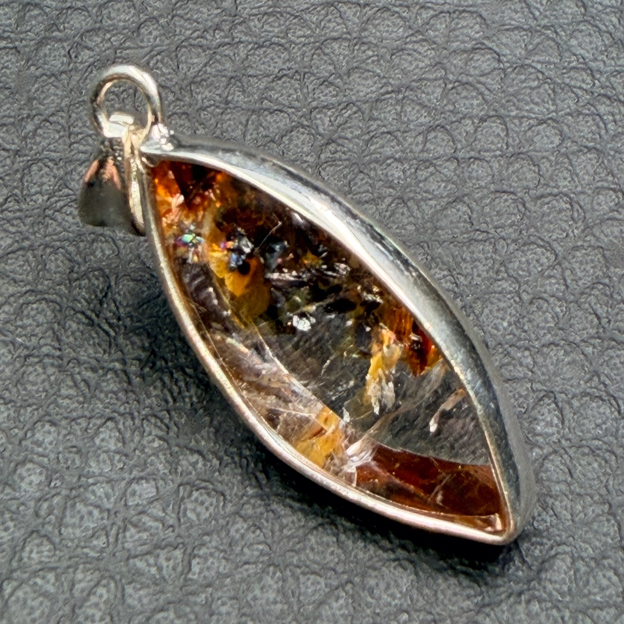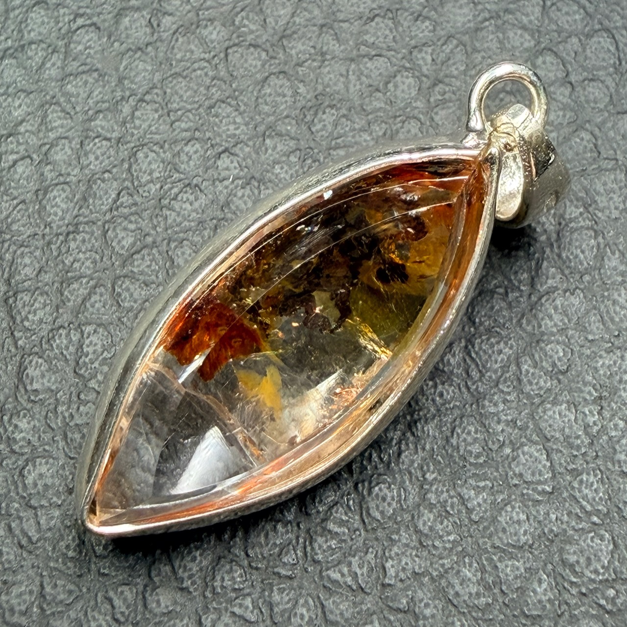 Taille du Pendentif Quartz Hématoïde hors bélière 2,5 cm sur 1,2 cm sur 0,6 cm.