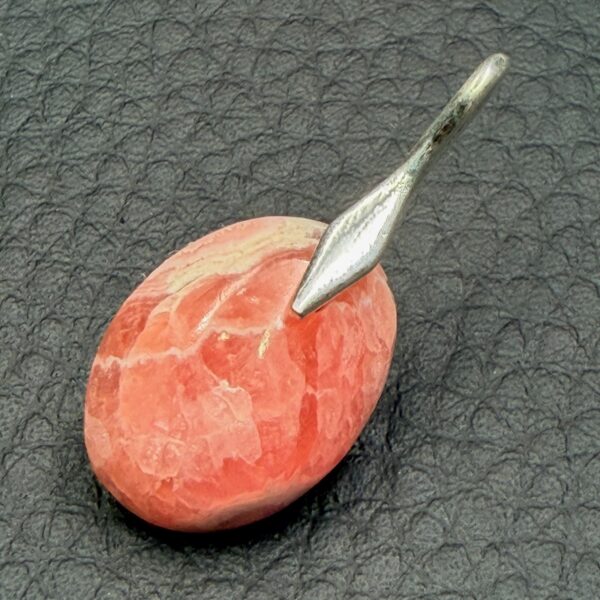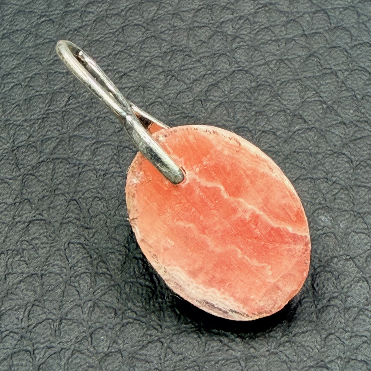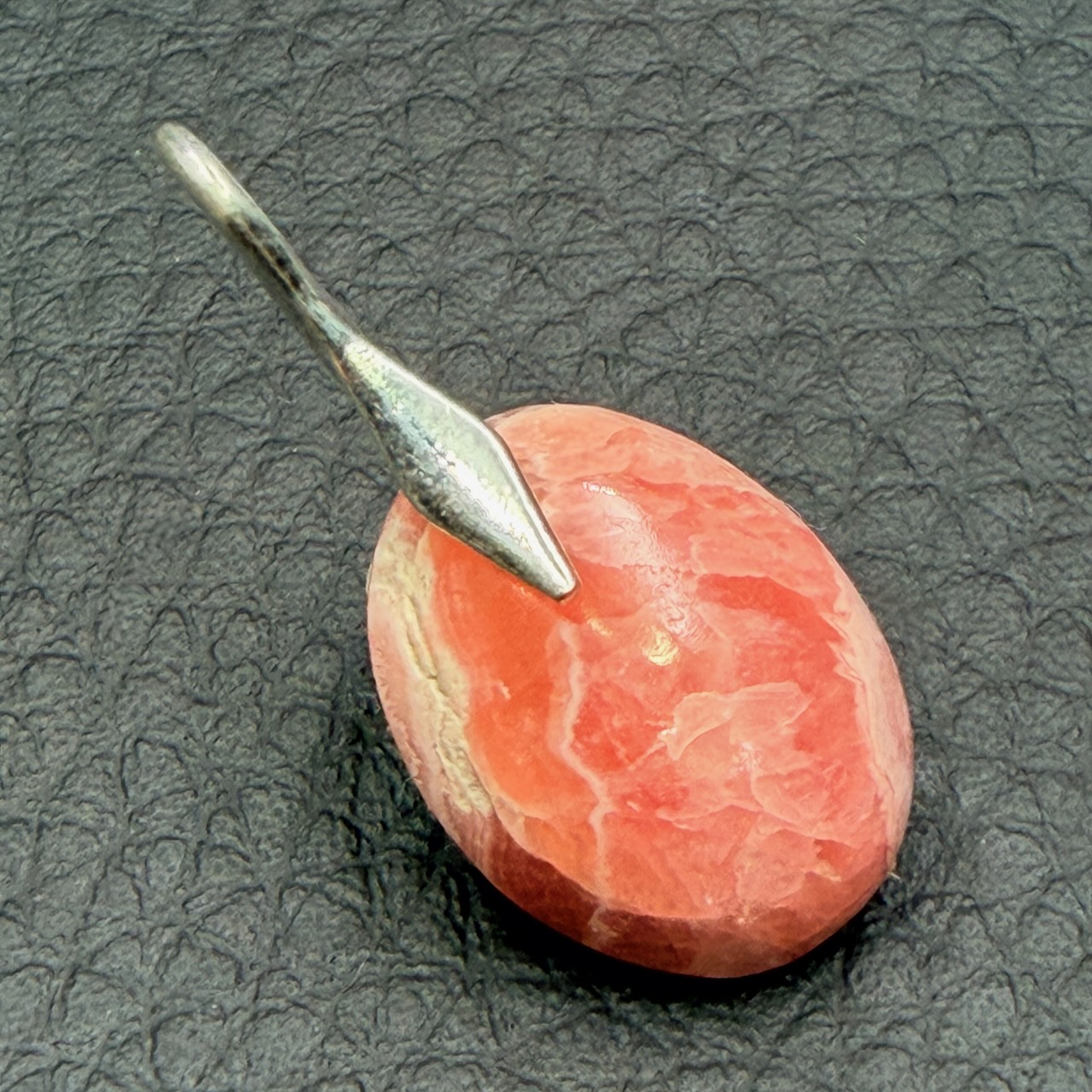 Taille du pendentif rhodochrosite hors bélière 1,7 cm sur 1,3 cm sur 0,5 cm.