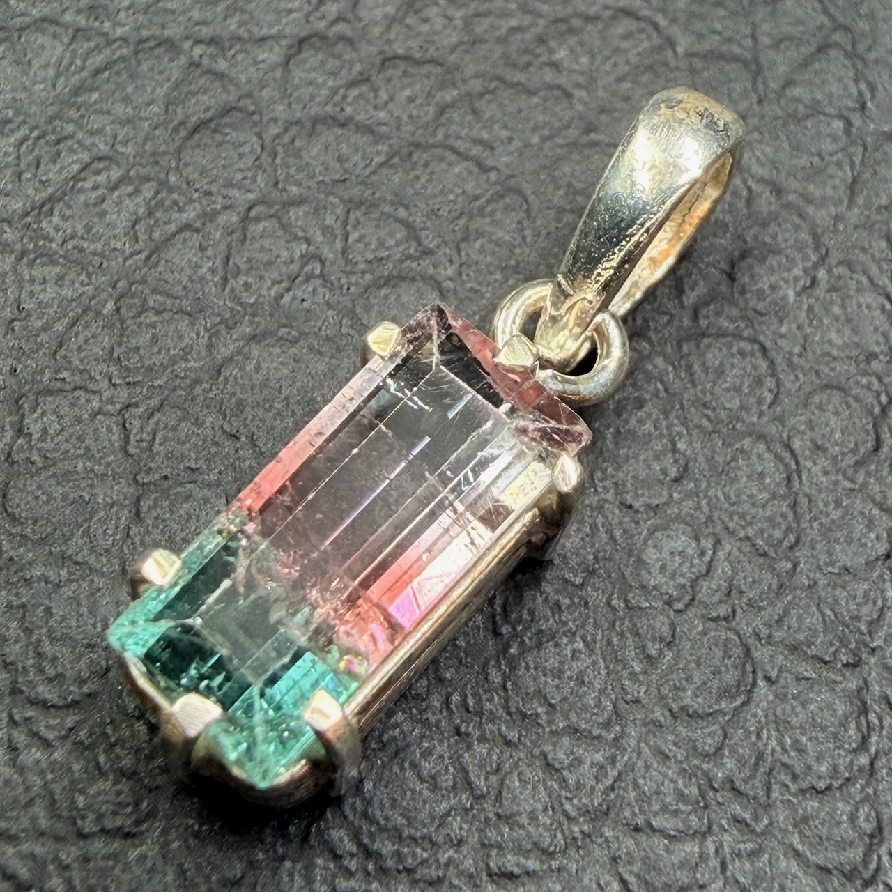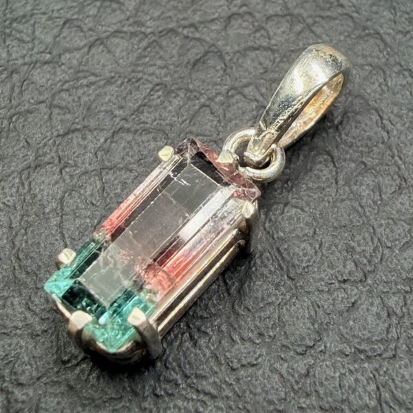 Taille du Pendentif Tourmaline Bicolore 1,1 cm sur 0,5 cm sur 0,4 cm.