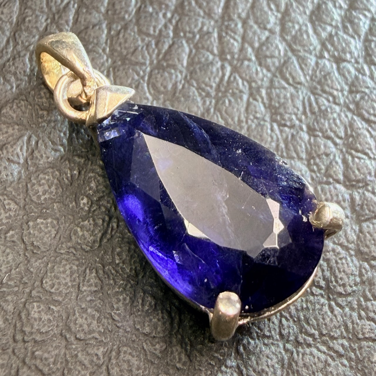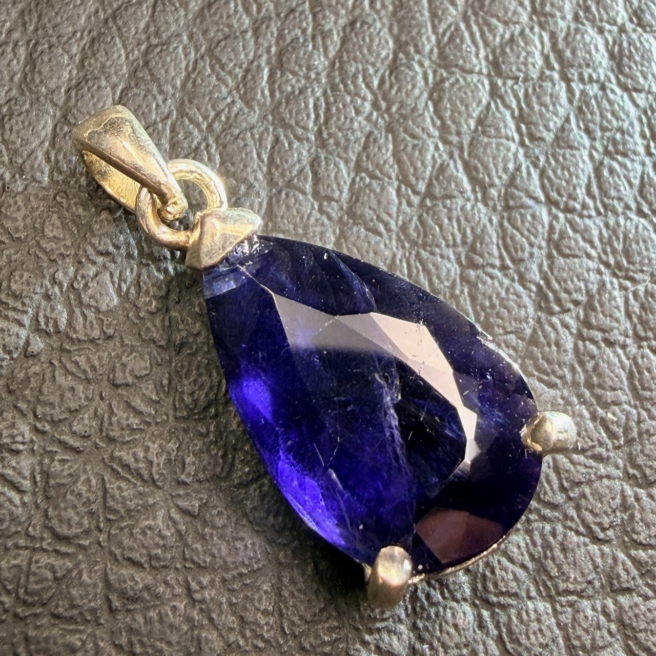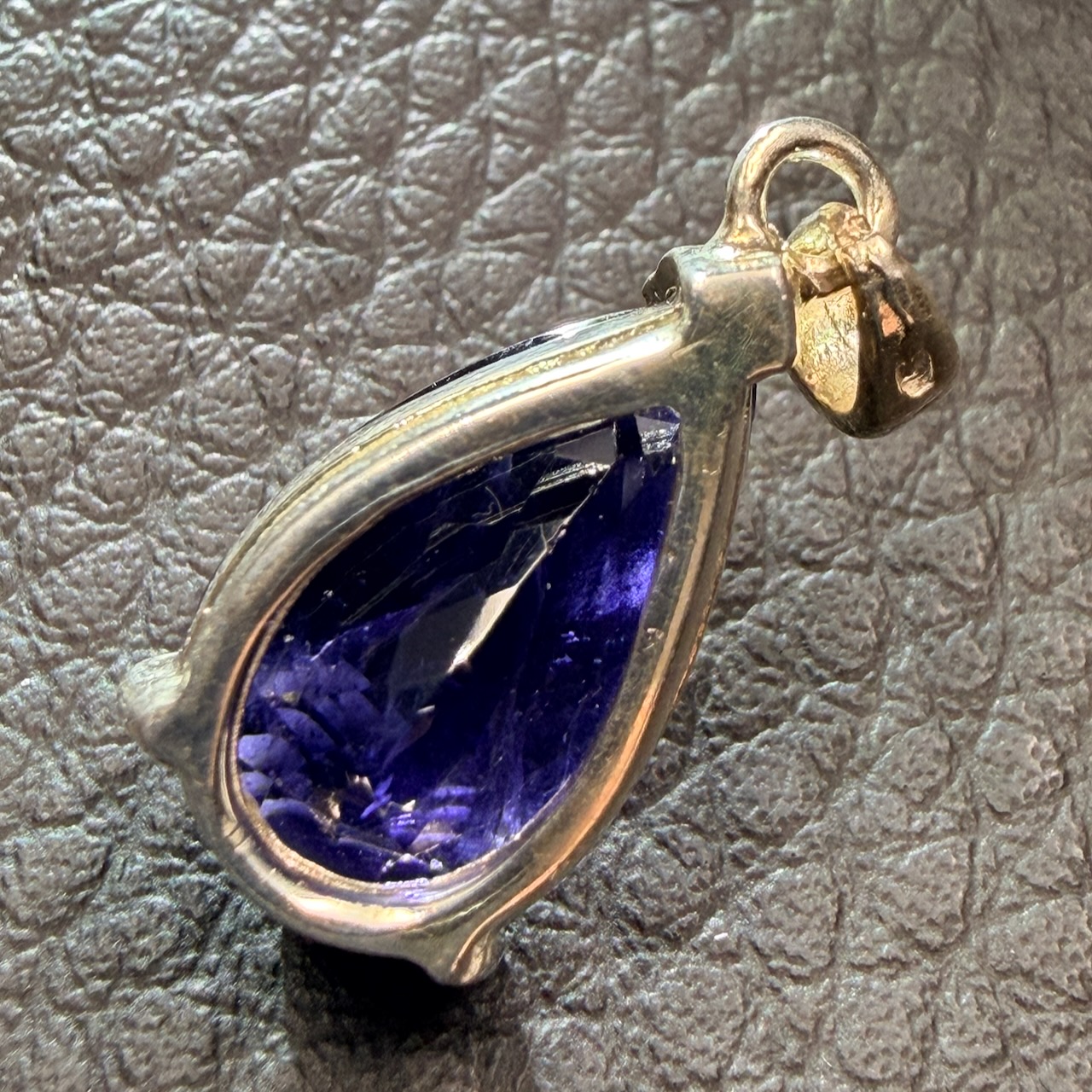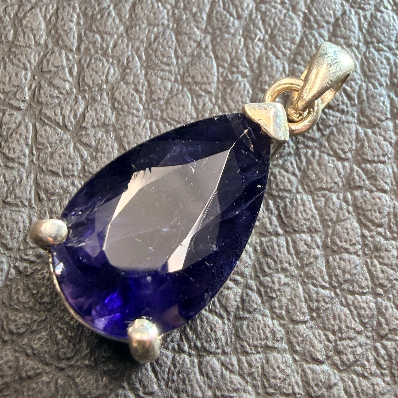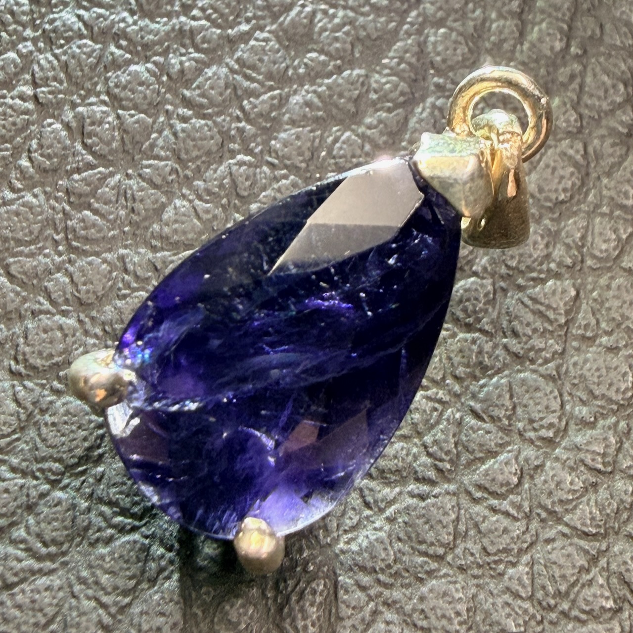Pendentif en tourmaline bleue violacée, pierre naturelle présentant une teinte profonde oscillant entre bleu nuit et violet soutenu. Cette nuance, dense et nuancée, met en évidence la richesse chromatique propre à certaines tourmalines de qualité, où la lumière révèle subtilement des reflets changeants selon l’angle d’observation.