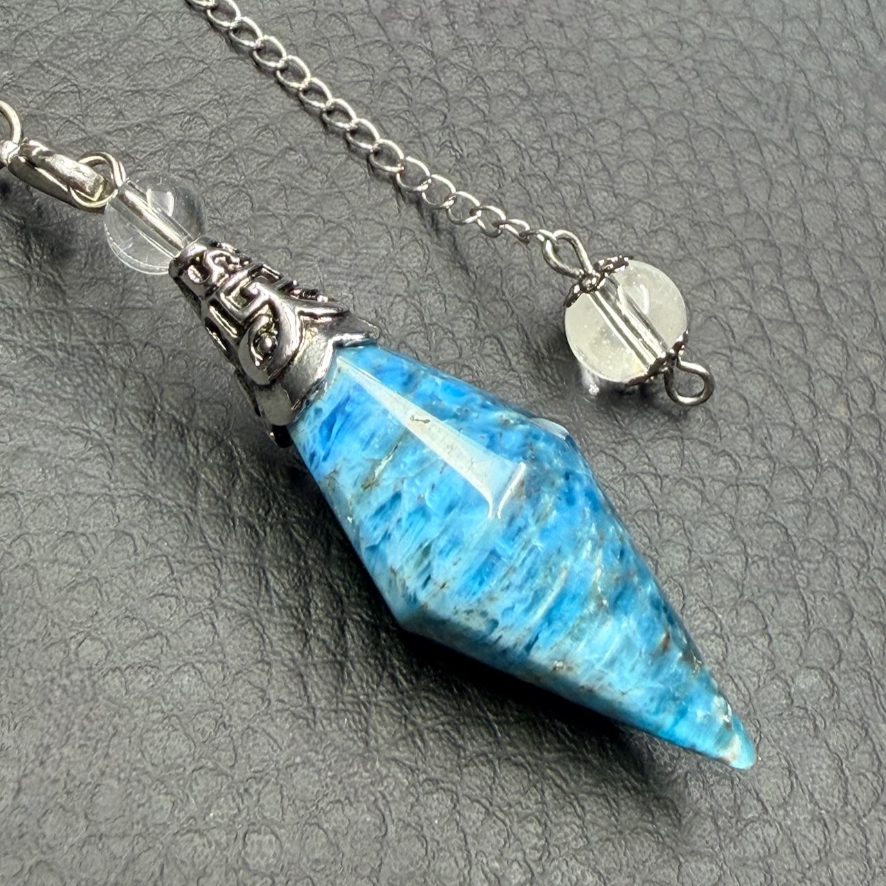 Que ce soit pour la divination, la guidance spirituelle ou la recherche de clarté, le pendule en apatite bleue offre un pont entre le monde matériel et le domaine mystique, offrant des perspectives riches et inspirantes.
