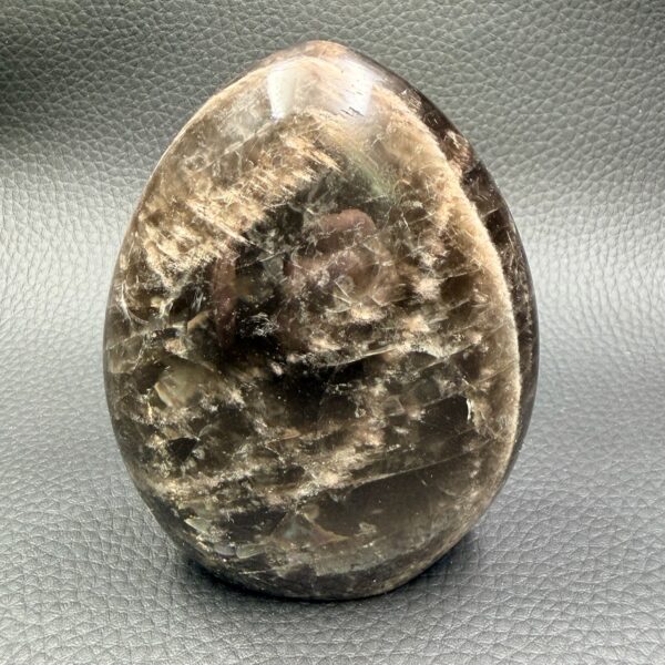 La pierre de lune noire, comme la plupart des feldspaths, a une dureté de 6 à 6,5 sur l’échelle de Mohs. Cette dureté la rend suffisamment durable pour être utilisée en bijouterie, bien qu’elle nécessite une manipulation et un entretien soigneux pour éviter les rayures. La densité de la pierre de lune noire se situe généralement entre 2,6 et 2,8 g/cm³, reflétant sa composition minérale.