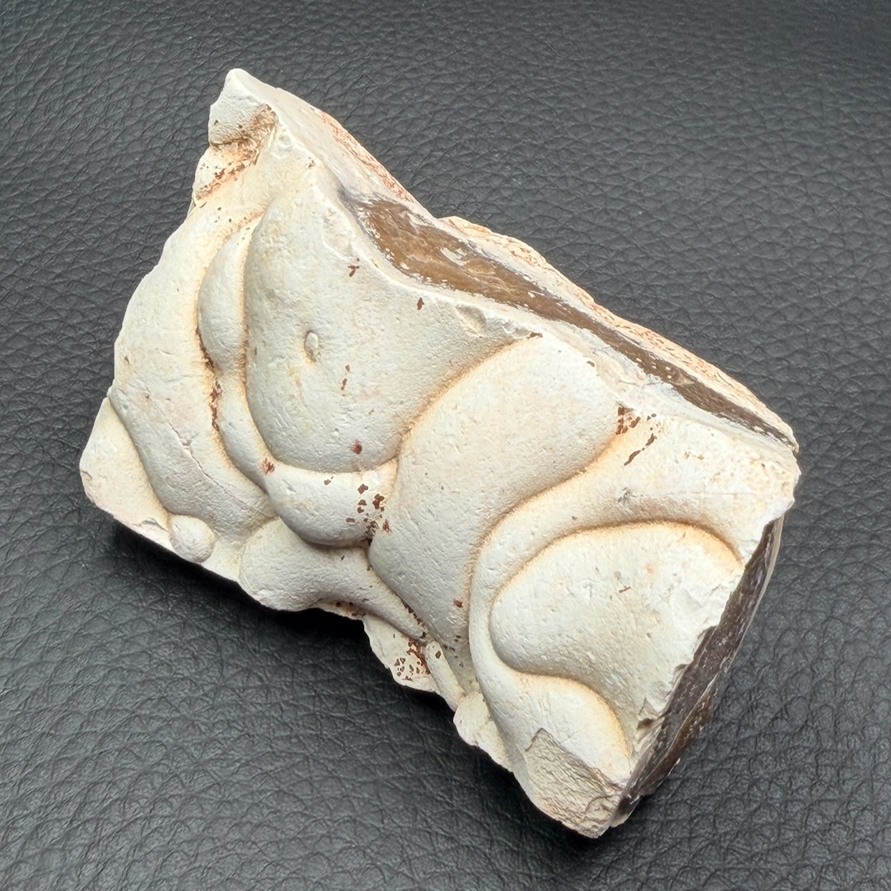 En revanche, la Pierre des Fées marocaine est généralement une variété de calcédoine, une forme de quartz microcristallin. Elle se caractérise par ses teintes blanches à crème, parfois agrémentées de motifs organiques et évocateurs.