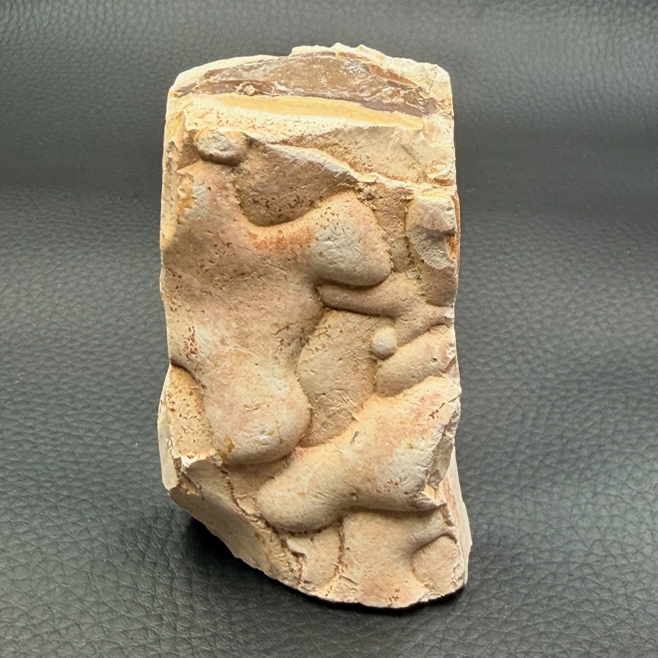 Parfois, la ménalite se forme par pseudomorphose, où la silice remplace d’autres minéraux ou matières organiques tout en conservant leur forme originale. Cette transformation unique confère à la ménalite ses formes et motifs distinctifs, souvent évocateurs de figures humaines ou animales, d’où son surnom poétique de « Pierre des Fées ».